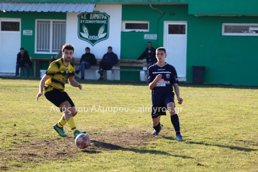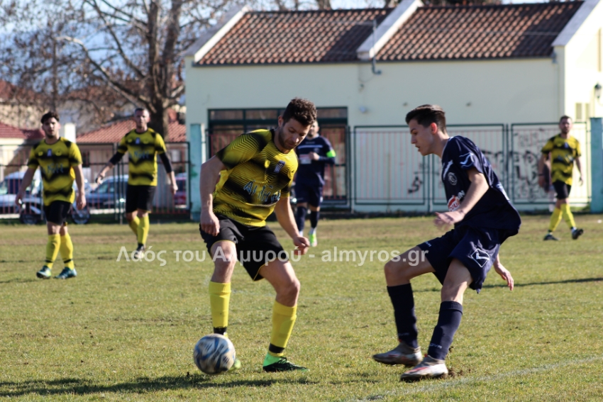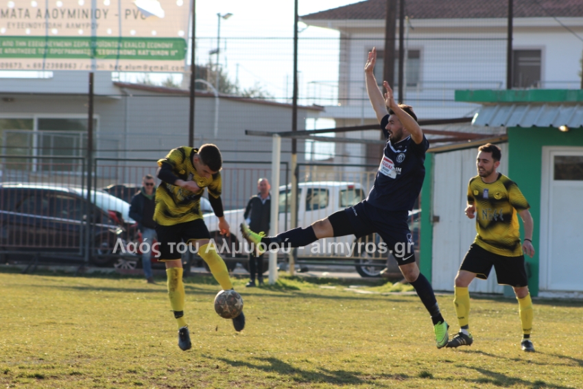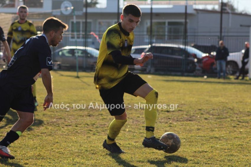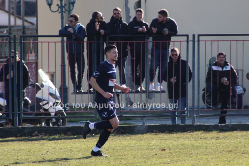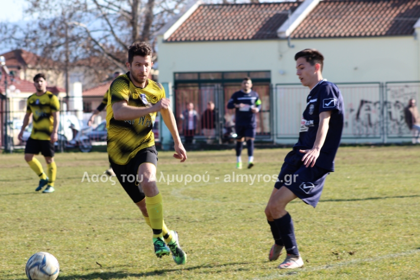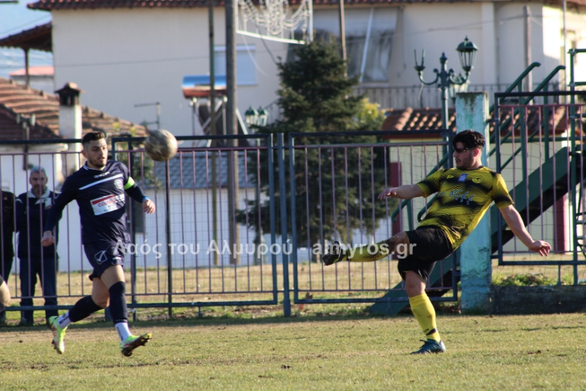 Ο Χειλάς δεν βρήκε καλά την μπάλα ενώ ήταν μόνος μπροστά στην εστία (39′) και στο τελευταίο λεπτό του πρώτου ημιχρόνου, είχαμε αποβολή και γκολ: η ομάδα του Βελεστίνου έμεινε με δέκα παίκτες όταν ο Γοδενόπουλος μάρκαρε αντικανονικά τον Βούλγαρη και δέχθηκε, σωστά, κίτρινη κάρτα, τη δεύτερη στο ματς. Από αυτό το φάουλ, ο Θανάσης Κατσαβριάς πέτυχε γκολ περνώντας την μπάλα δίπλα από το τείχος, άλλο ένα καταπληκτικό γκολ από τον αρχισκόρερ του Αίαντα.