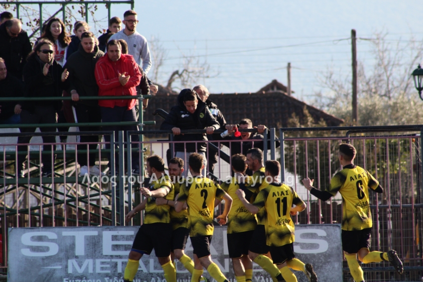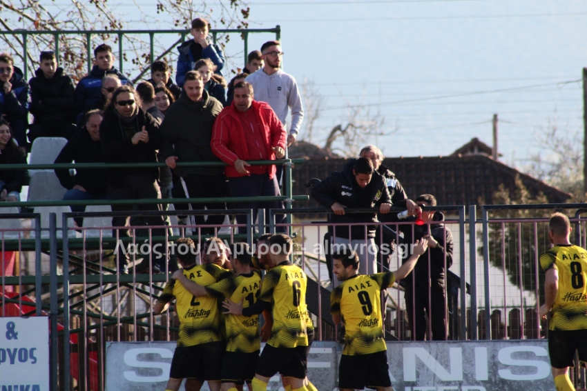 Στο 3ο λεπτό, ύστερα από εκτέλεση κόρνερ για τον Αίαντα, σουτ του Τσάμη χτύπησε στο οριζόντιο δοκάρι και στην εξέλιξη της φάσης, σουτ του Χειλά από πλάγια αριστερά απέκρουσε ο Τσιλίγκος, σε πολύ καλή διπλή ευκαιρία για τους γηπεδούχους. Λίγο αργότερα νέα ευκαιρία από κοντά με τον Αραπίτσα (οι φιλοξενούμενοι διαμαρτυρήθηκαν για χέρι του επιθετικού και είχαν δίκαιο) και στο 11′ το 0-1: ο Ρήγας κέρδισε φάουλ περίπου δέκα μέτρα από τη μεγάλη περιοχή, στον άξονα. Το εκτέλεσε με δυνατό σουτ ο Χρήστος Σταματίου, πέρασε την μπάλα από το τείχος και σκόραρε!!!