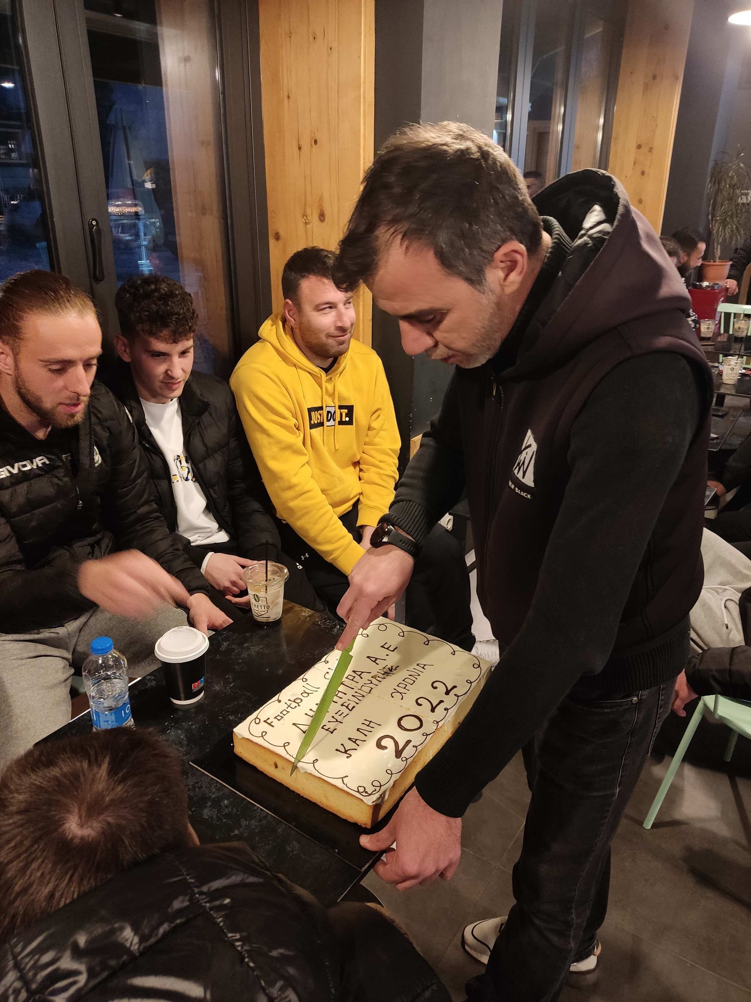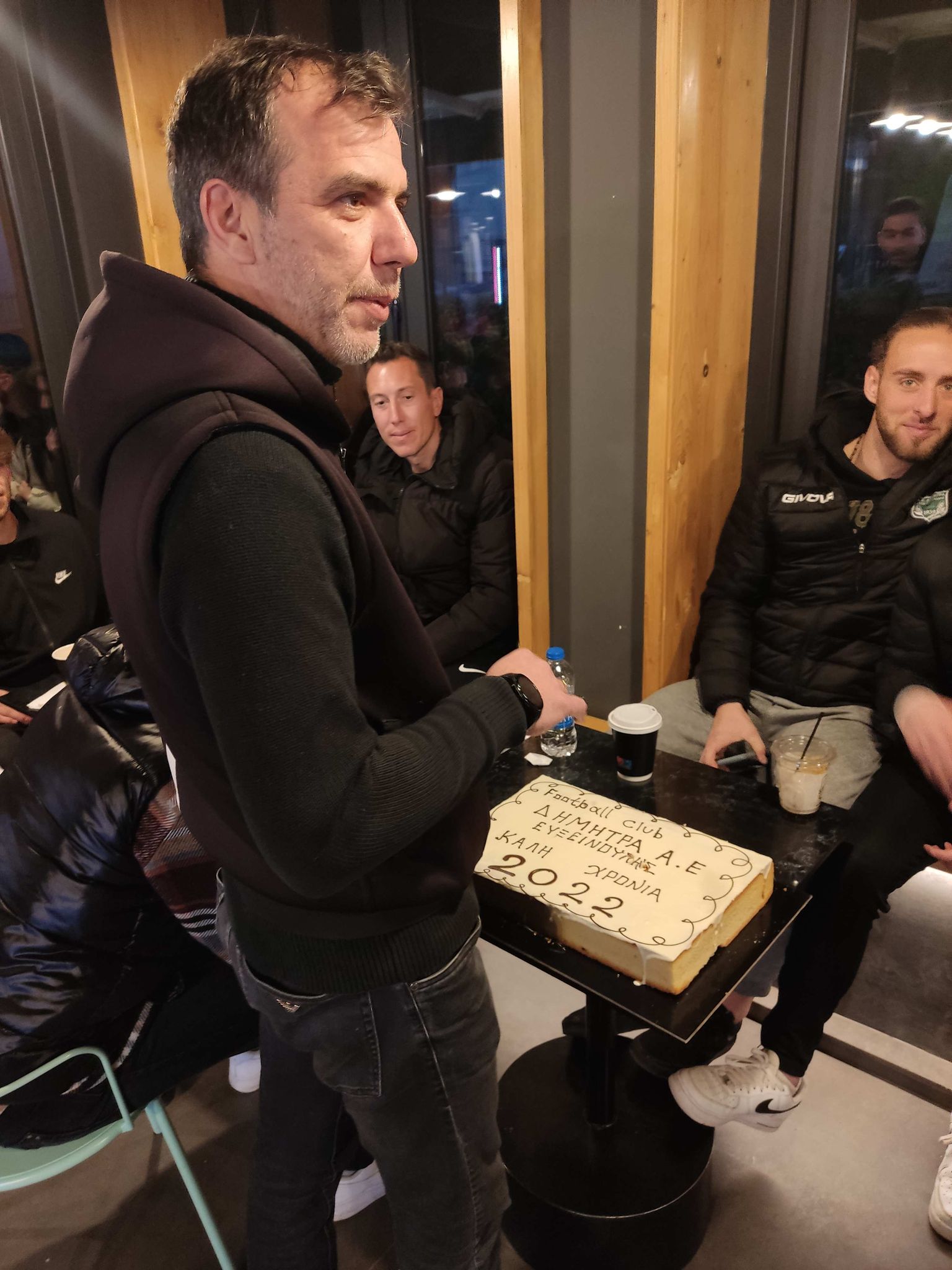 Μετά τη σημερινή προπόνηση (23/2/22), διοίκηση, προπονητές και ποδοσφαιριστές της Δήμητρας είχαν την κοπή Βασιλόπιτας στην καφετέρια Stretto στον Αλμυρό μέσα σε ωραίο, οικογενειακό κλίμα. Τυχερός που βρήκε το φλουρί ο “ταρζάν” Γιώργος Δημητρίου. Θυμίζουμε ότι αγωνιστική δράση δεν υπάρχει αυτή την Κυριακή στον 3ο όμιλο της Γ’ Εθνικής παρά μόνο ένα εξ αναβολής παιχνίδι, το επόμενο ματς για την ομάδα της Ευξεινούπολης στις 2 Μαρτίου.