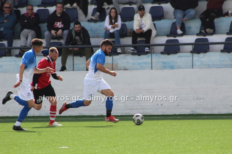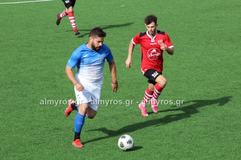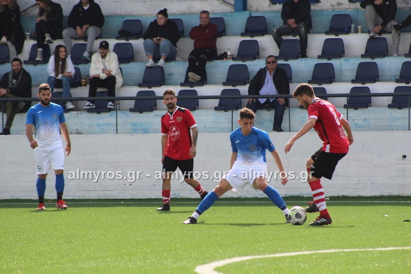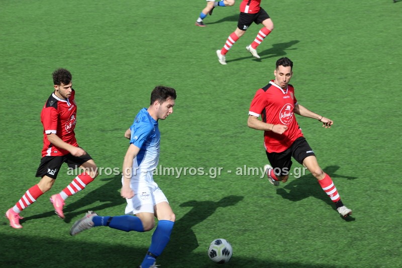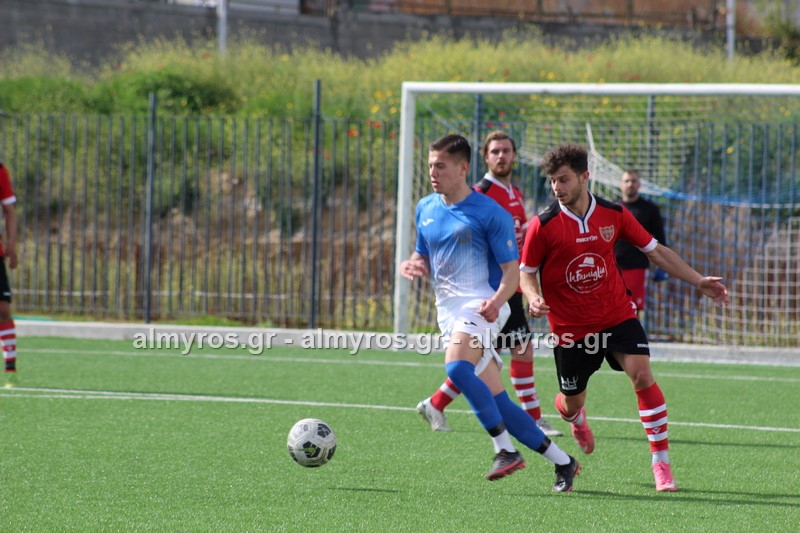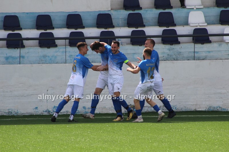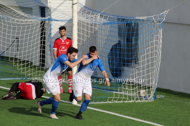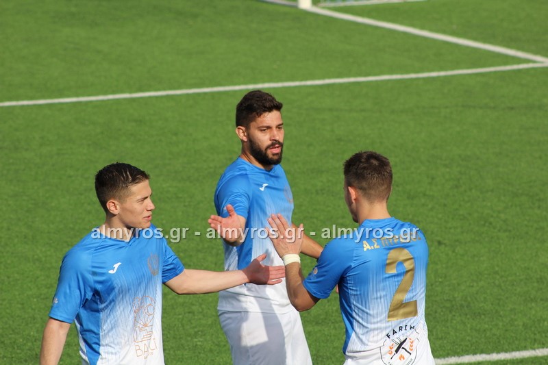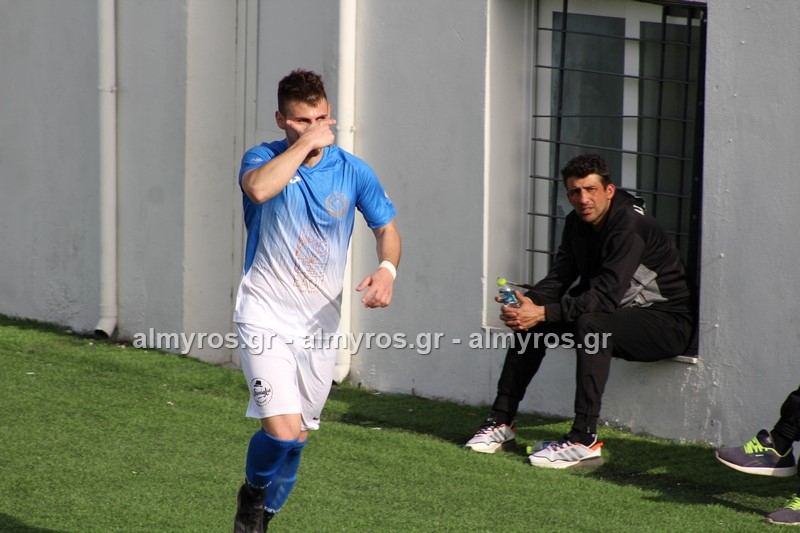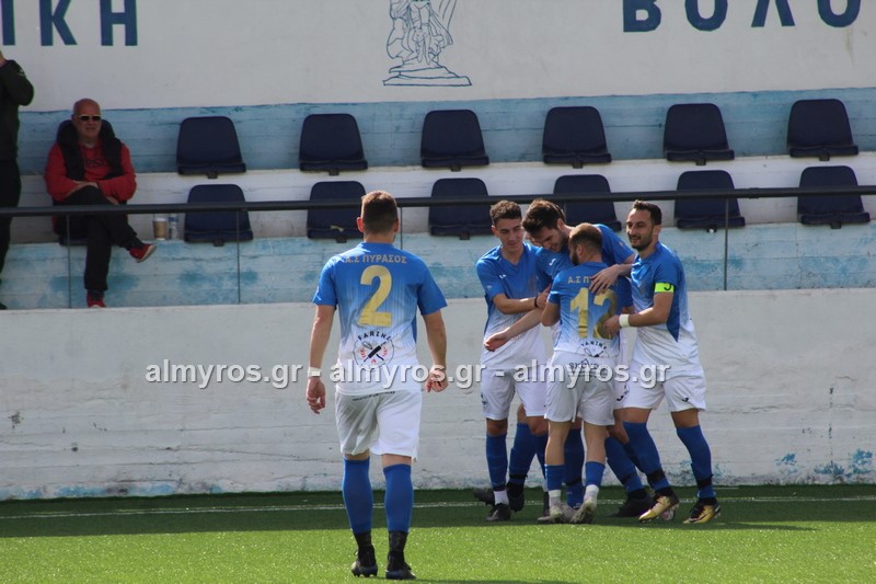 Το 1-0 στο 11′ με φοβερό γκολ του Βλάχου. Πήρε την μπάλα λίγο έξω από την περιοχή και πλάγια αριστερά, ζύγισε το πόδι του και την έστειλε δοκάρι και δίχτυα. Καταπληκτικό τελείωμα ποιότητας από τον σέντερ φορ των Αγχιαλιτών. Στο 17′ ο Πύρασος ξεδίπλωσε αντεπίθεση-φωτιά, ο Ζάχος προσπέρασε τον τερματοφύλακα, αλλά βγήκε πλάγια και αντί να σουτάρει, έκανε πάσα που ανέκοψε ο στόπερ του Σαρακηνού.