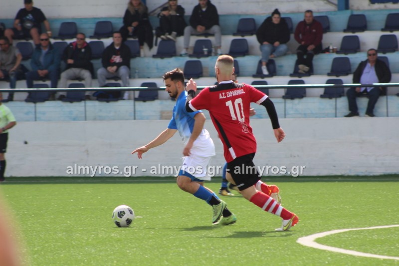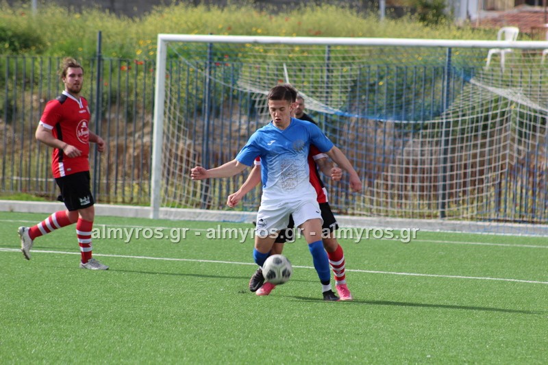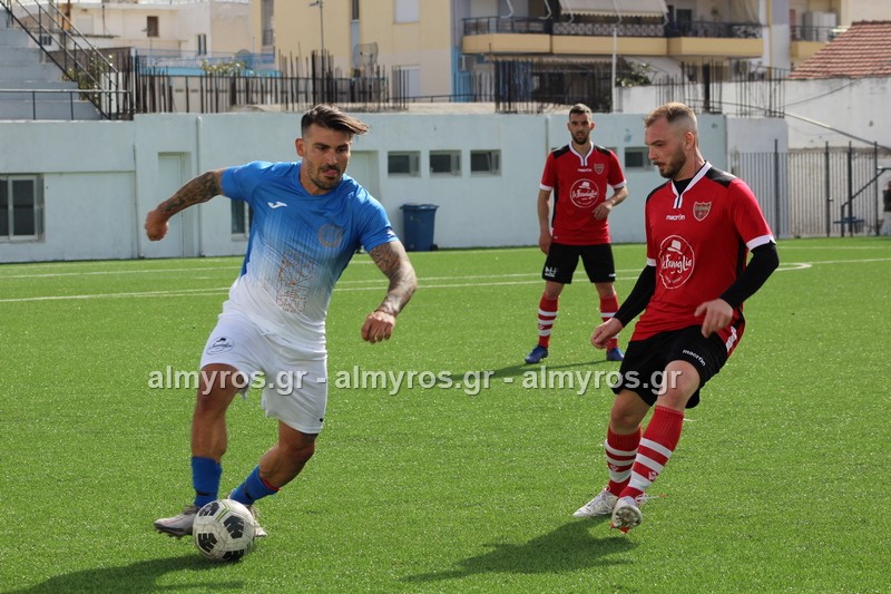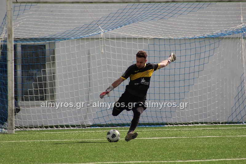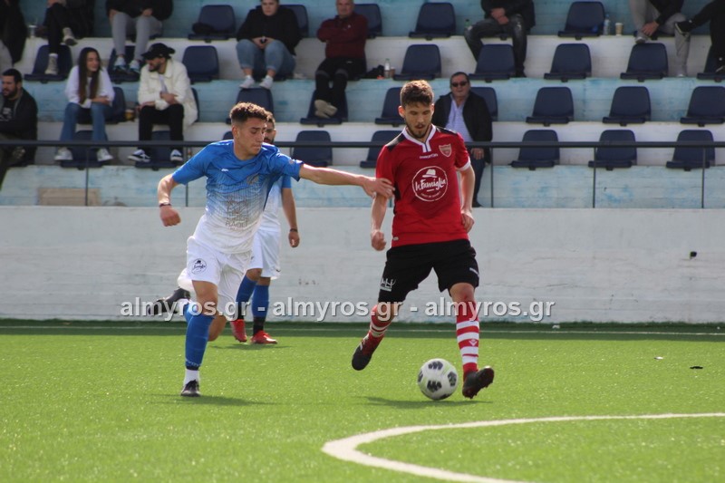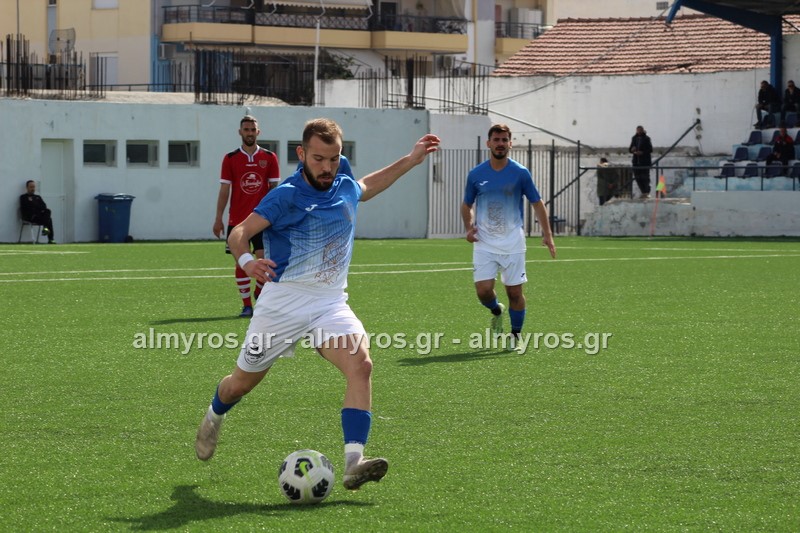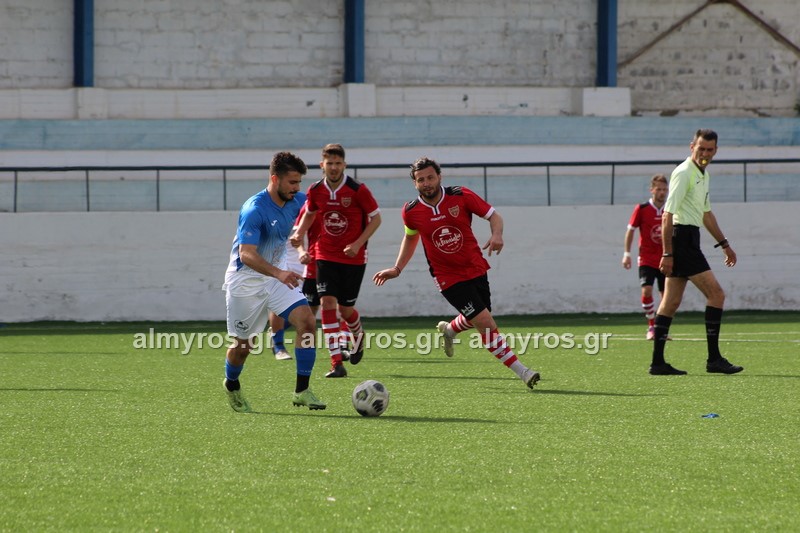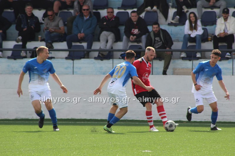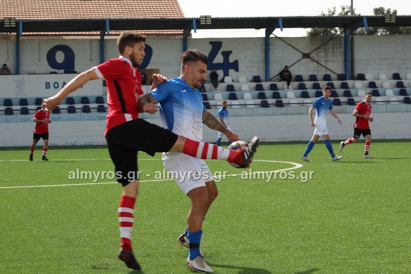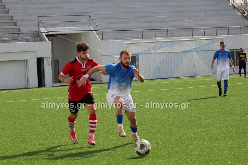 Το 1-0 στο 11′ με φοβερό γκολ του Βλάχου. Πήρε την μπάλα λίγο έξω από την περιοχή και πλάγια αριστερά, ζύγισε το πόδι του και την έστειλε δοκάρι και δίχτυα. Καταπληκτικό τελείωμα ποιότητας από τον σέντερ φορ των Αγχιαλιτών. Στο 17′ ο Πύρασος ξεδίπλωσε αντεπίθεση-φωτιά, ο Ζάχος προσπέρασε τον τερματοφύλακα, αλλά βγήκε πλάγια και αντί να σουτάρει, έκανε πάσα που ανέκοψε ο στόπερ του Σαρακηνού.
