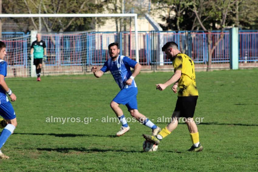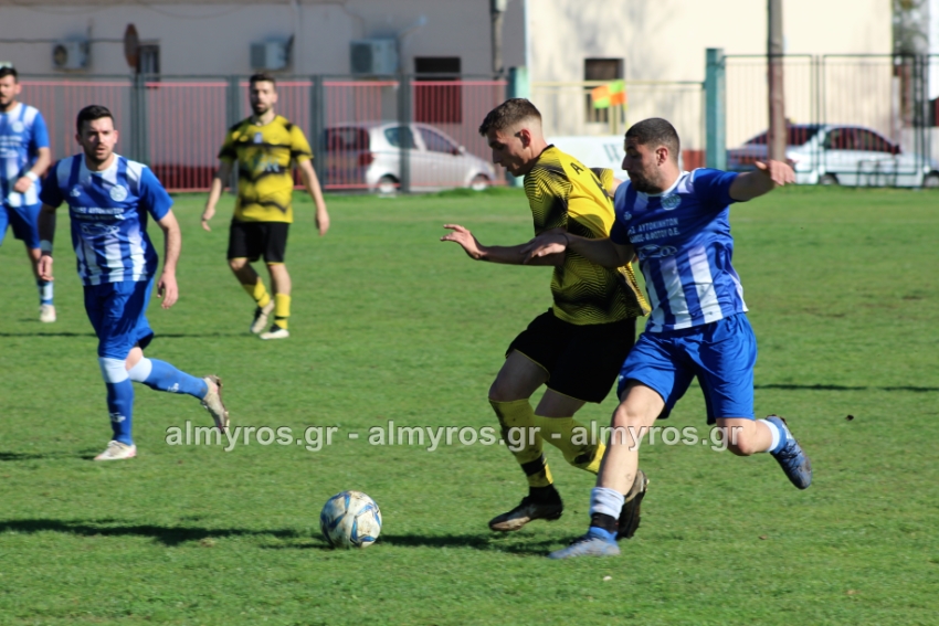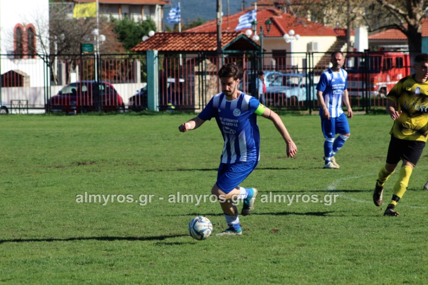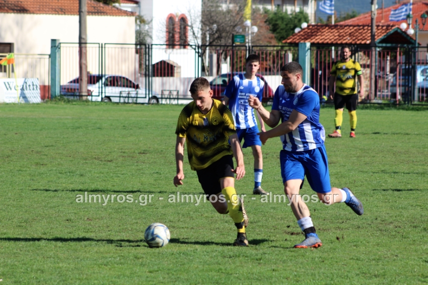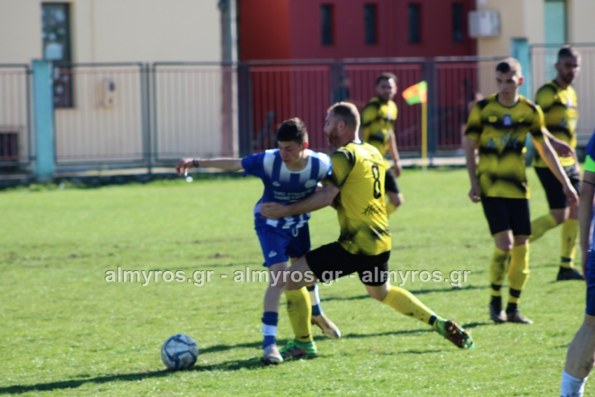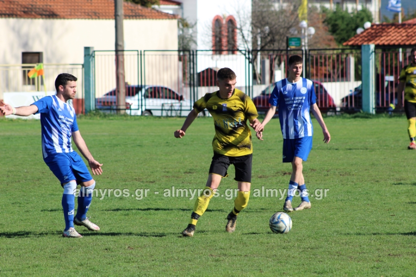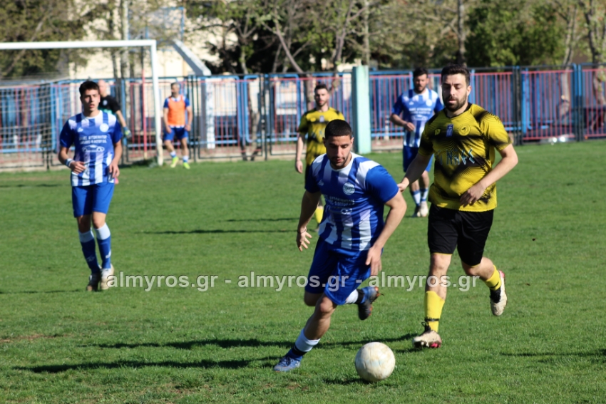 Οι “κιτρινόμαυροι” προηγήθηκαν νωρίς, στο 10ο λεπτό: σέντρα του Αραπίτσα και κεφαλιά γκολ του Χειλά. Στο α’ ημίχρονο, η Ακρόπολη απείλησε με σουτ του Παγώνη από καλή θέση άουτ και σε δύο περιπτώσεις με τους Κ. Σταυραντώνη, Πιτσάβα που δεν μπόρεσαν να βρουν την μπάλα.