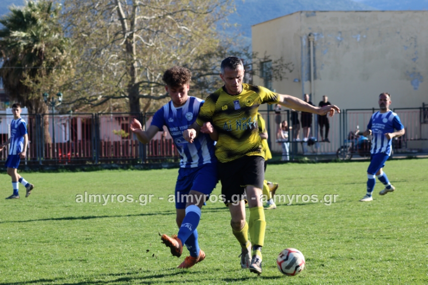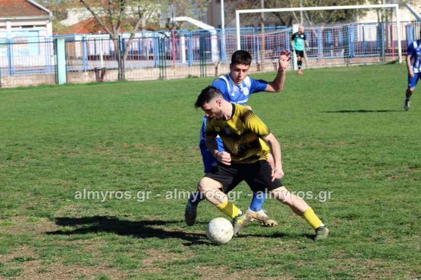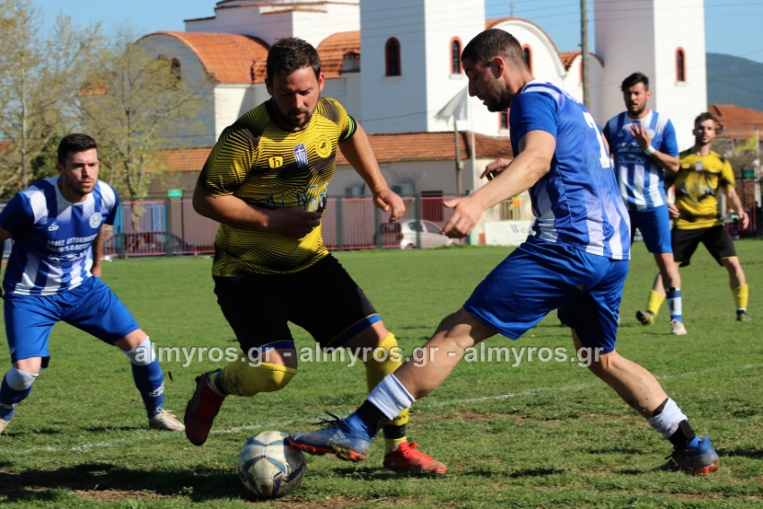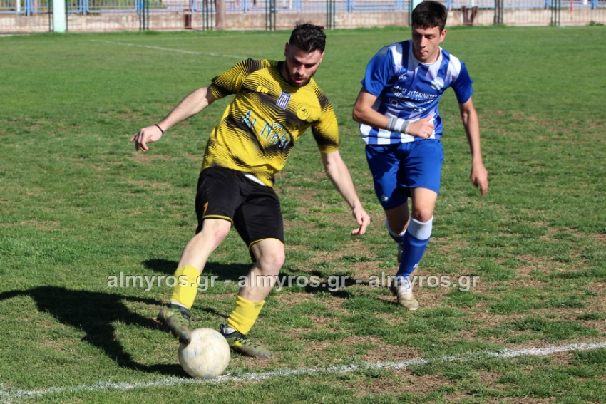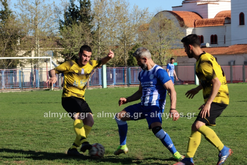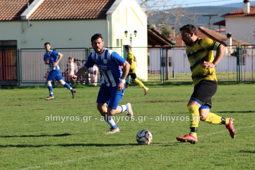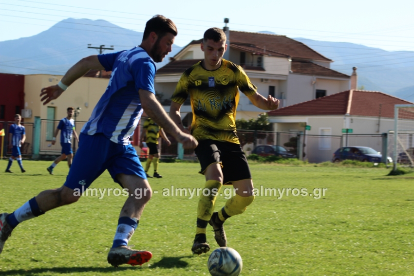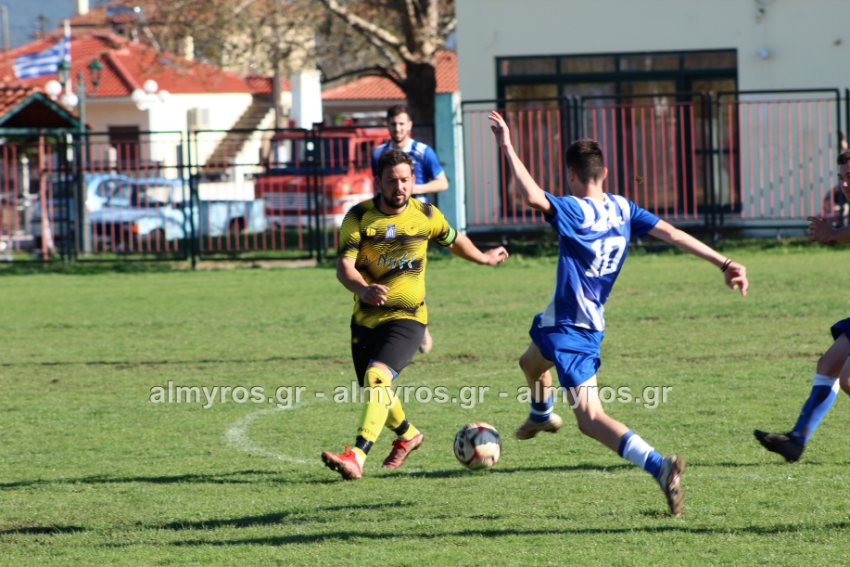 Οι “κιτρινόμαυροι” προηγήθηκαν νωρίς, στο 10ο λεπτό: σέντρα του Αραπίτσα και κεφαλιά γκολ του Χειλά. Στο α’ ημίχρονο, η Ακρόπολη απείλησε με σουτ του Παγώνη από καλή θέση άουτ και σε δύο περιπτώσεις με τους Κ. Σταυραντώνη, Πιτσάβα που δεν μπόρεσαν να βρουν την μπάλα.