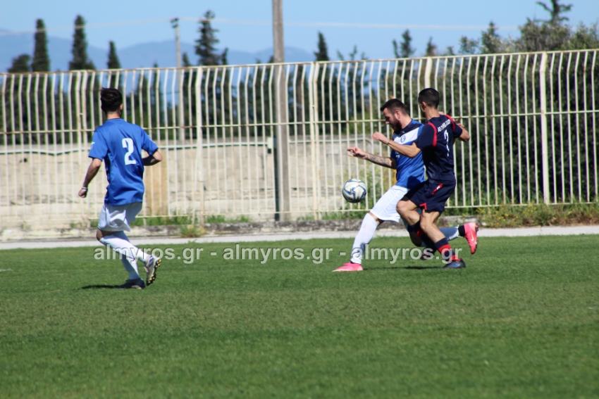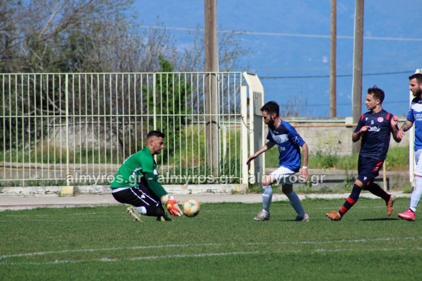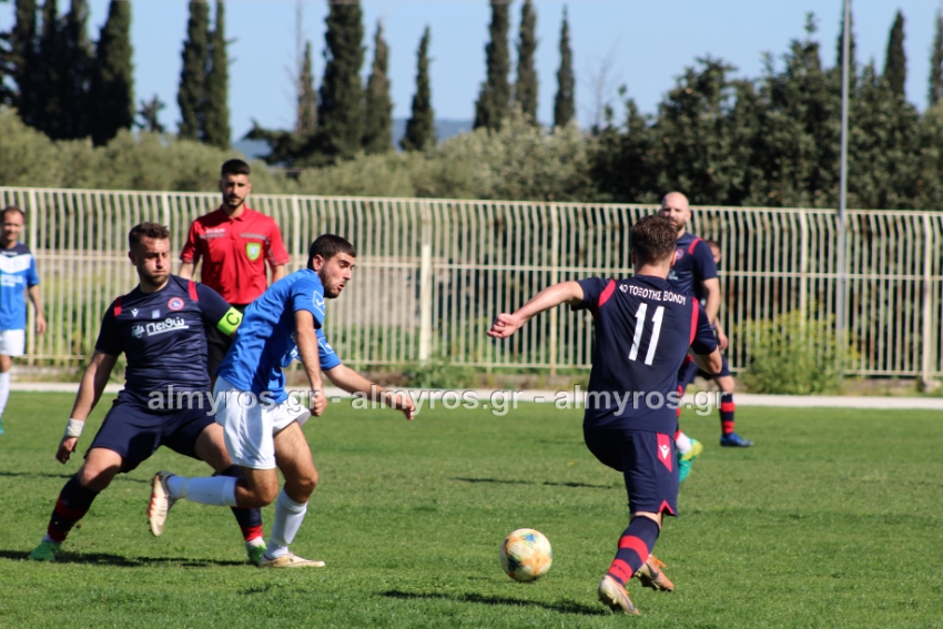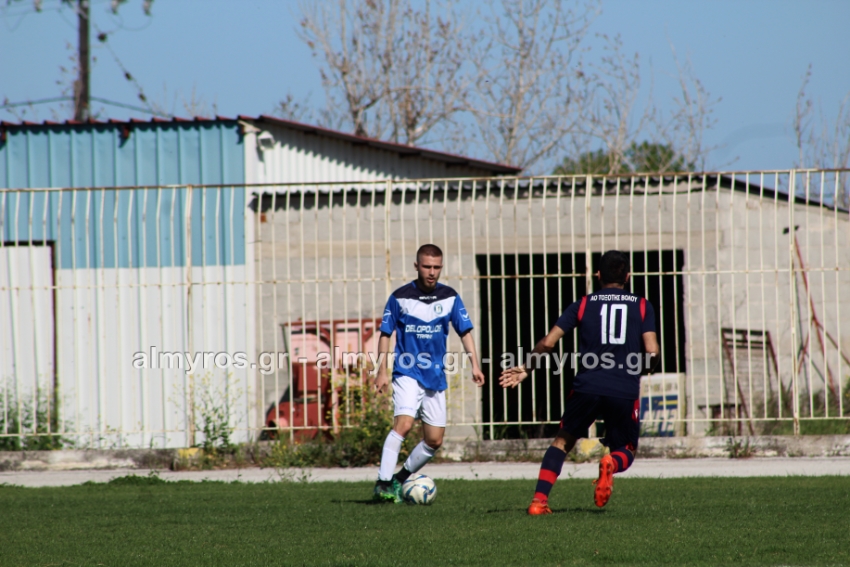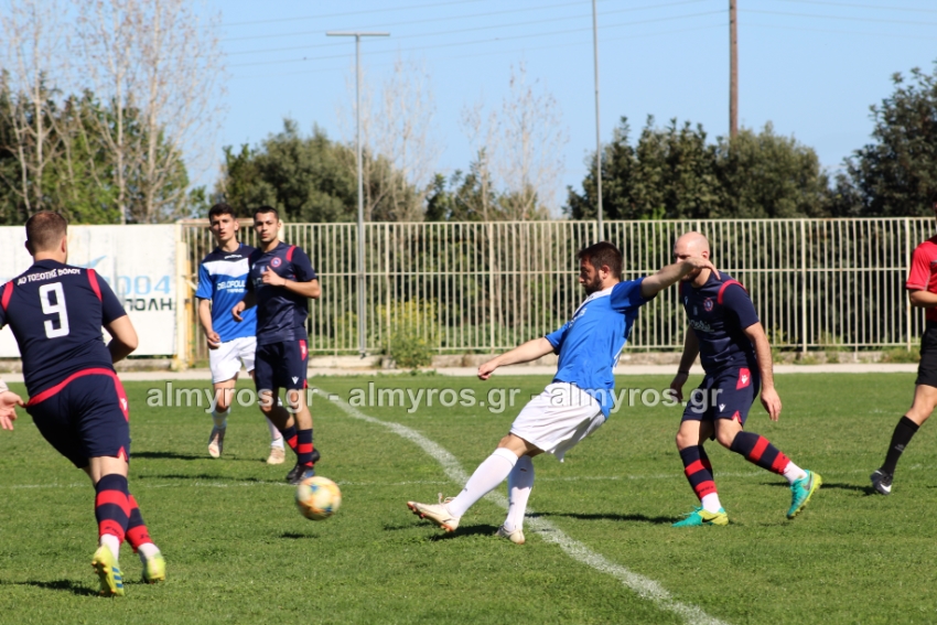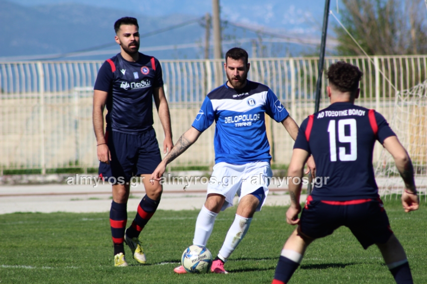Δυνατό σουτ του Βούλγαρη απέκρουσε ο Μπράνος, στο ριμπάουντ από κοντά ο Χριστοφορίδης του έβαλε στοπ με τάκλιν ο Σιγαλάκος. Στο 39′ ο Γιαννακούρας σε καλή θέση δεν βρήκε την μπάλα, μετά βγήκε σέντρα και ο αμαρκάριστος στη μικρή περιοχή Δενελάβας είχε κεφαλιά άουτ, σε πολύ καλή στιγμή για τη φιλοξενούμενη βολιώτικη ομάδα.