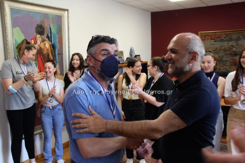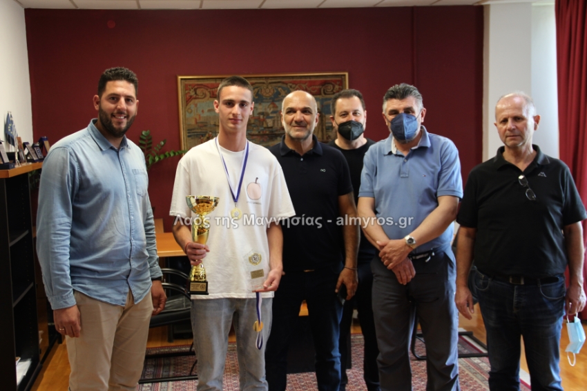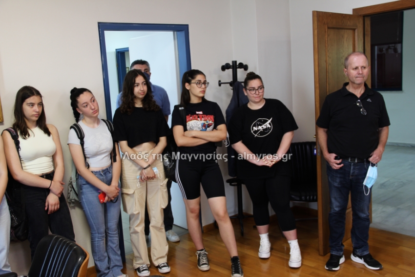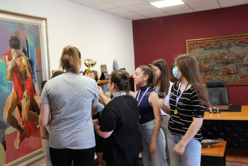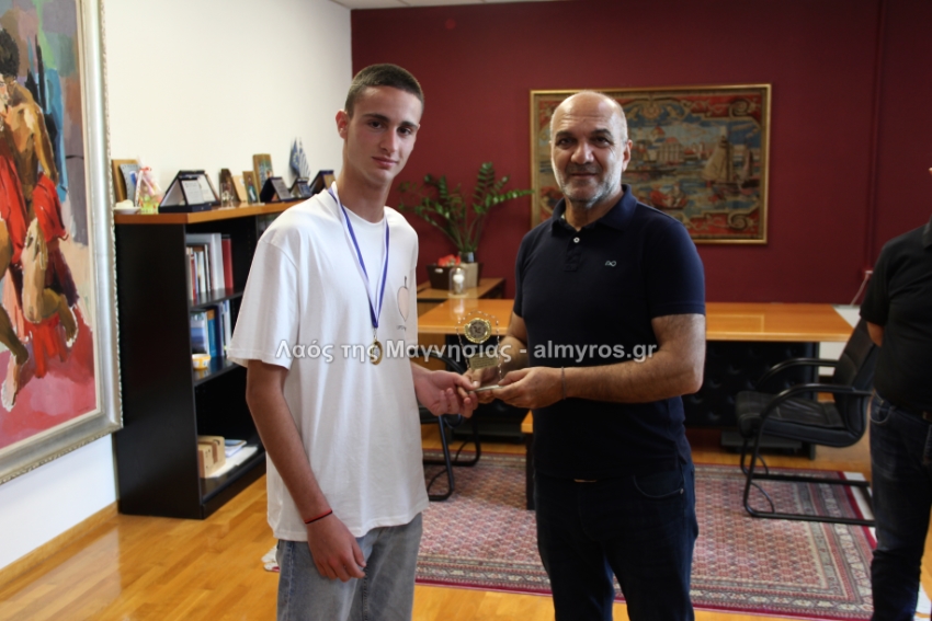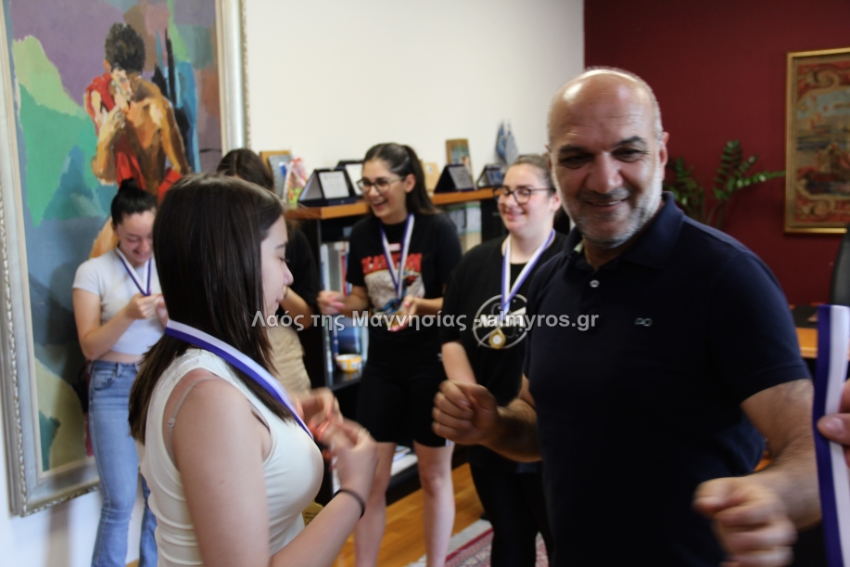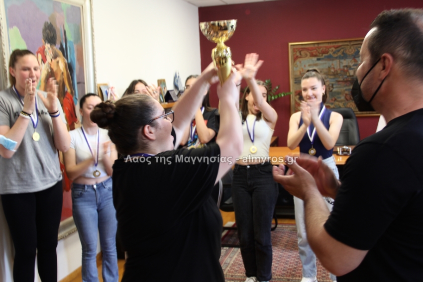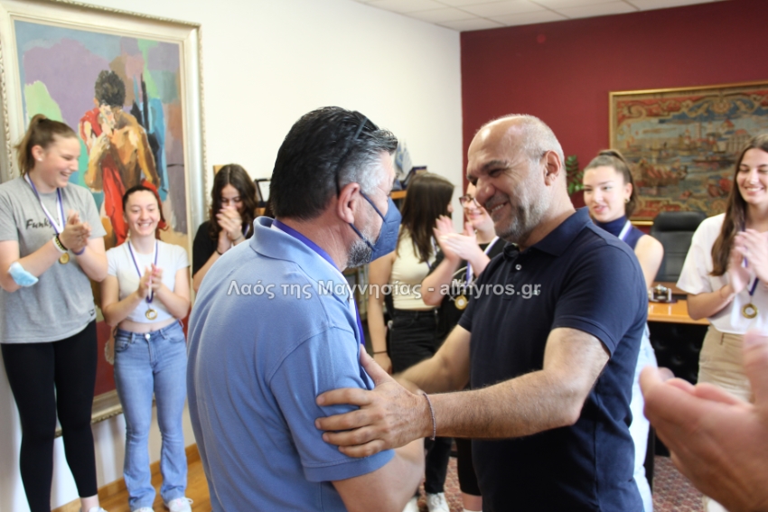 Μια ωραία εκδήλωση πραγματοποιήθηκε σήμερα το πρωί (Τρίτη 17 Μαΐου) στο γραφείο του Δημάρχου που γέμισε από παιδικές φωνές κι όμορφα χαμόγελα! Ο Δήμαρχος Αλμυρού Ευάγγελος Χατζηκυριάκος, μαζί με τον Αντιδήμαρχο Λεωνίδα Βούλγαρη και τον πρόεδρο του Συλλόγου Φίλων Κουρί Ιωάννη Δεληζήση υποδέχθηκαν τους μαθητές του Γενικού Λυκείου Αλμυρού που σημείωσαν επιτυχίες στα σχολικά αθλητικά πρωταθλήματα: τα κορίτσια της ομάδας βόλεϊ και τον Σταύρο Κοντοβά που διακρίθηκε στο άλμα εις ύψος.