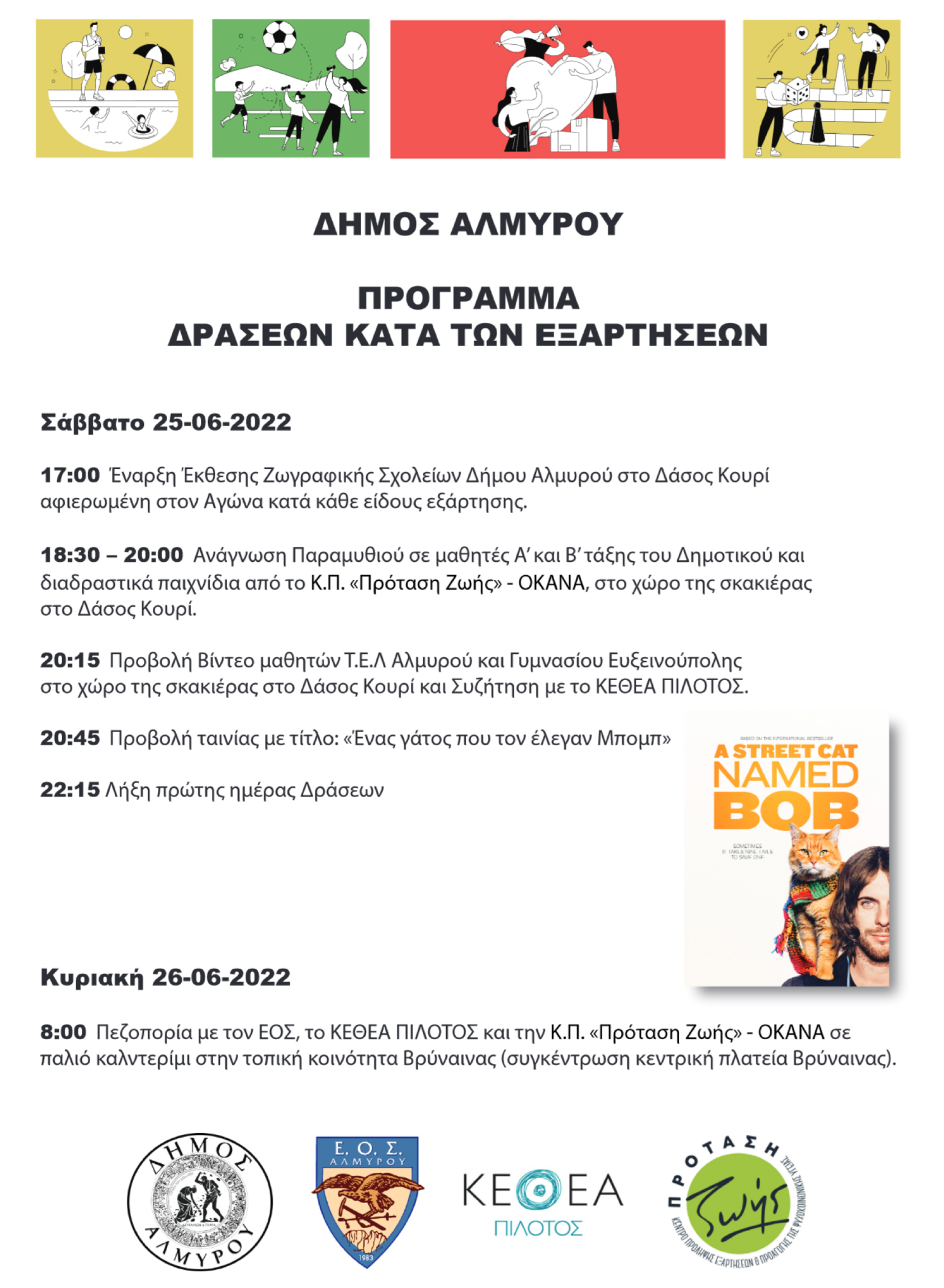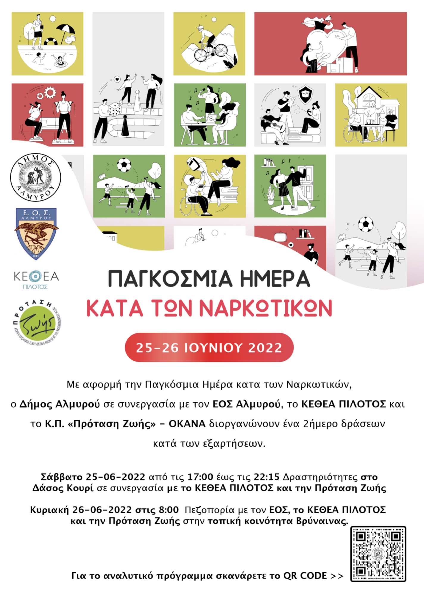 Τοπικά 17 Ιουνίου, 2022 Διήμερες δράσεις στον Αλμυρό για την Παγκόσμια ημέρα κατά των ναρκωτικών Το διήμερο 25-26 Ιουνίου προγραμματίζονται δράσεις στον Αλμυρό για την Παγκόσμια Ημέρα Κατά των Ναρκωτικών. Δείτε το αναλυτικό πρόγραμμα: Tags ΑΛΜΥΡΟΣ ΔΗΜΟΣ ΑΛΜΥΡΟΥ ΕΟΣ ΑΛΜΥΡΟΥ ΚΕΘΕΑ ΠΑΓΚΟΣΜΙΑ ΗΜΕΡΑ ΚΑΤΑ ΤΩΝ ΝΑΡΚΩΤΙΚΩΝ ΠΡΟΤΑΣΗ ΖΩΝΗΣ