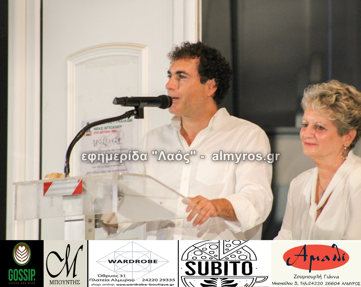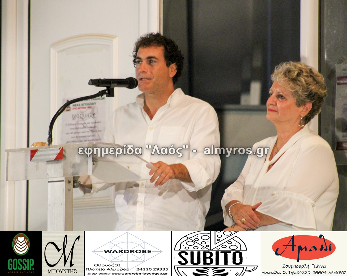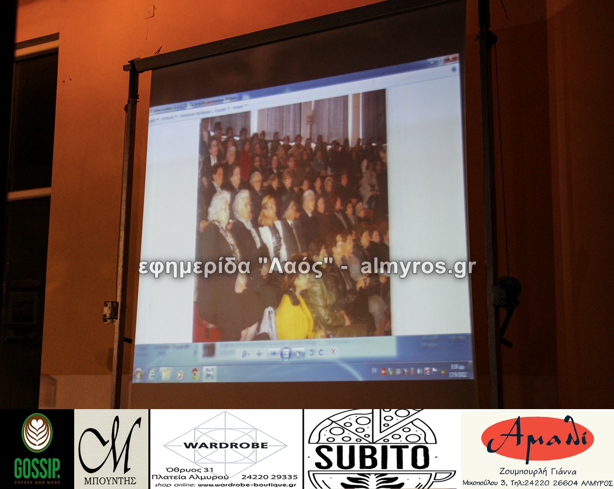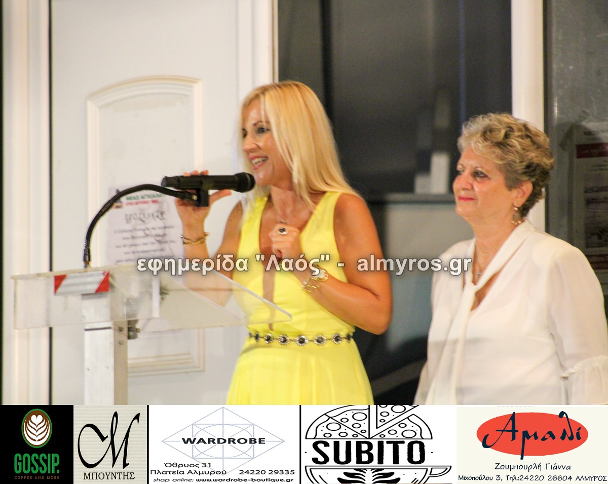Μεταξύ των άλλων όπως είπε: «ο σύλλογος ξεκίνησε το 1982 από έναν μικρό τότε τόπο, χωριό, και όχι μόνο κατάφερε να διανύσει μια πορεία 40 χρόνων αλλά προσέφερε και προσφέρει ένα μοναδικό κοινωνικό έργο στην πόλη μας, συγκεντρώνοντας όλο και περισσότερες γυναίκες. Από την ίδρυσή του, προσπαθεί ανελλιπώς να δίνει το στίγμα της πολιτιστικής μας κληρονομιάς που έφεραν οι πρόγονοί μας από την παλιά Αγχίαλο. Όλα αυτά τα χρόνια αμέτρητες ομιλίες, παρουσιάσεις, κάθε χρόνο γιορτινές εκδηλώσεις, αναβιώνουμε τα ήθη κι έθιμα του τόπου μας. Το κοινωνικό μας έργο αποτελεί μια ουσιαστική παρέμβαση στην κοινωνία μας, με φιλανθρωπική δράση για συμπολίτες μας που έχουν ανάγκη».