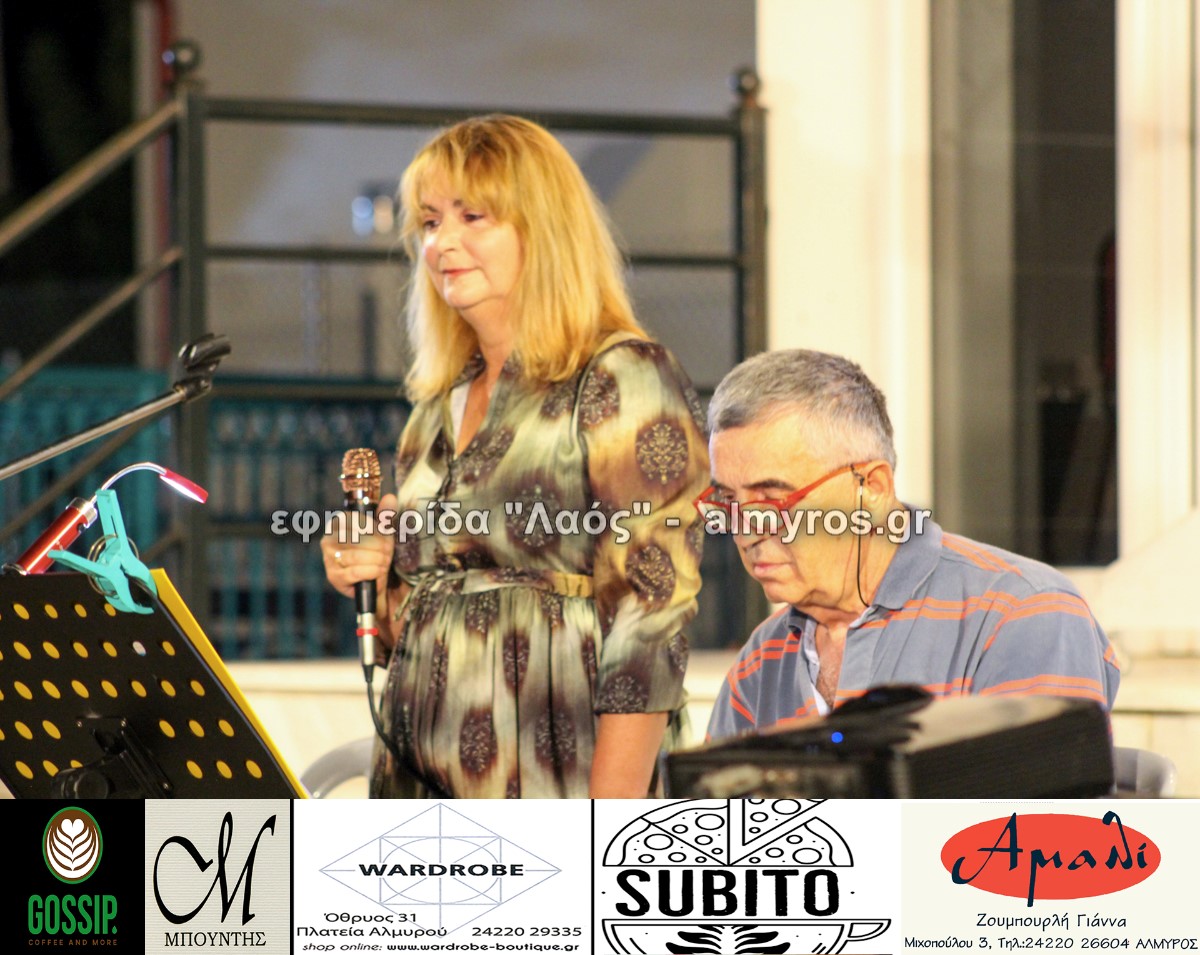 Ακολούθησε απαγγελία τριών ποιημάτων και θα σταθούμε ιδιαίτερα σε αυτό που εμπνεύστηκε ο Ζαν-Κλωντ, ένας Γάλλος φιλέλληνας που ζει στη Ν. Αγχίαλο, ο οποίος το απήγγειλε στη μητρική του γλώσσα και η κα Βούζα μεταφρασμένο στα ελληνικά. Ο Δημήτρης Τζουμερκιώτης στο αρμόνιο και η Ελένη Μακρυγιάννη-Κολώνη στο τραγούδι επιμελήθηκαν το μουσικό πρόγραμμα, άρτιο με αγαπημένα κομμάτια μιας άλλης εποχής, ενώ το ζεύγος Κουτμάνη χάρισε ένα αρμονικό βαλς που απέσπασε το ζεστό χειροκρότημα.