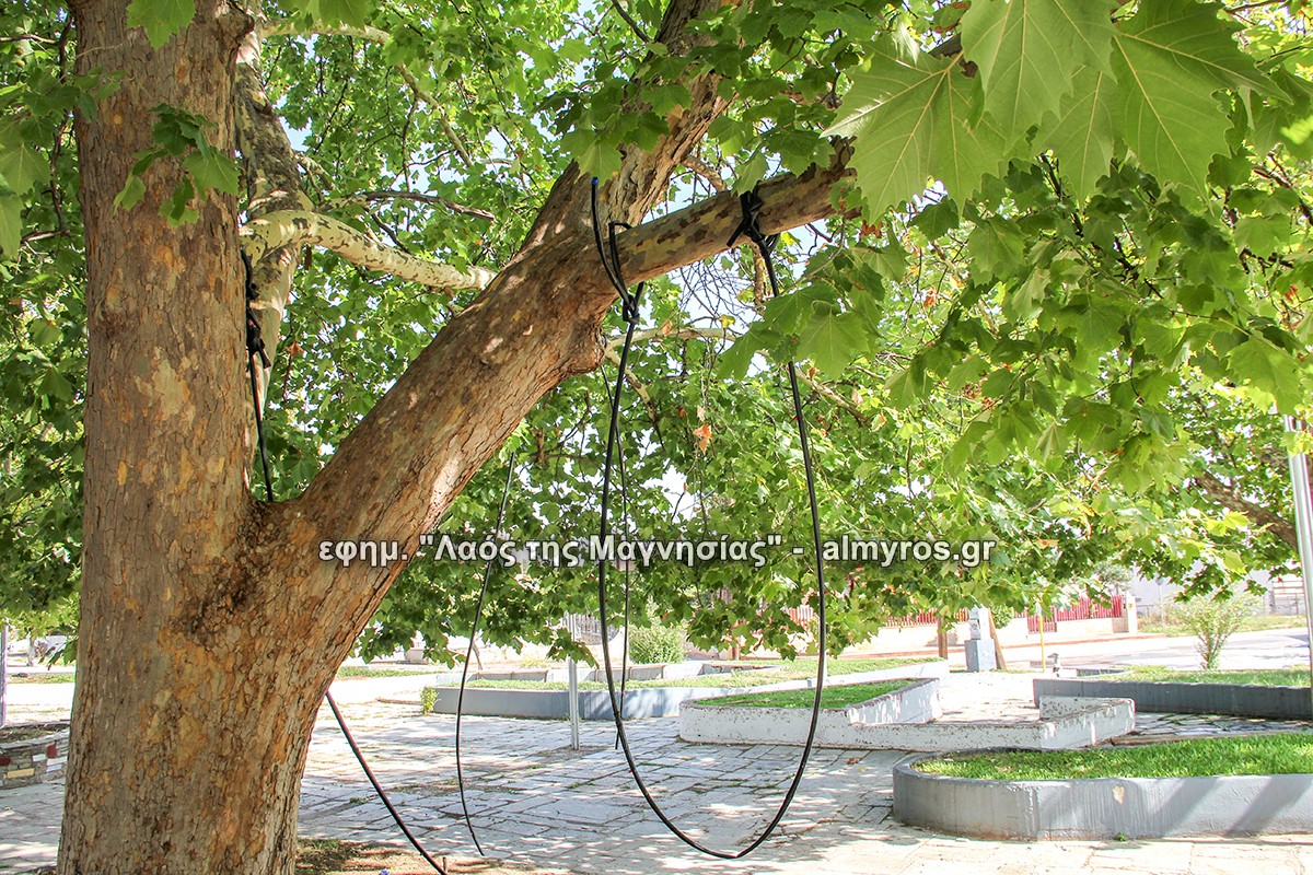 Κάτοικος Αλμυρού, κοντά στο πάρκο που βρίσκεται πάνω από τον σταθμό του ΚΤΕΛ, μας ενημέρωσε για ένα επικίνδυνο παιχνίδι των παιδιών… Όπως μπορείτε να δείτε στις φωτογραφίες, πήραν τα λάστιχα ποτίσματος, τα έδεσαν και τα μετέτρεψαν σε αυτοσχέδιες κούνιες… Αφενός καταστράφηκε η δημοτική περιουσία και το σύστημα ποτίσματος, αφετέρου εγκυμονούν κίνδυνοι για τη σωματική ακεραιότητα των παιδιών που παίζουν με αυτόν τον τρόπο.