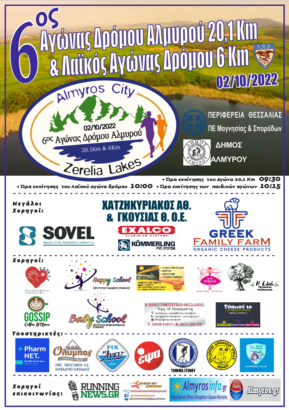 Μέχρι την Τρίτη οι δηλώσεις συμμετοχής στον αγώνα δρόμου «Almyros-Zerelia Lakes»