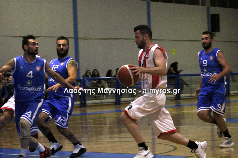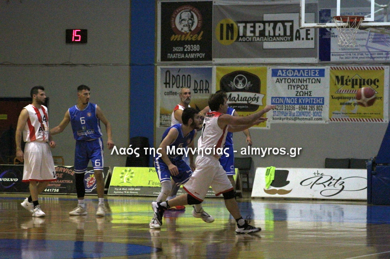 Ο Κοντάκης με τρίποντο το 54-49, ακολούθησε καλάθι του Γιώργου Κουρκούμπα και νέο δίποντο του Κοντάκη, στο ανοικτό γήπεδο ένα δύσκολο λέι απ για το +9 της αλμυριώτικης ομάδας. Δύο σερί όμως σουτ έξω από τα 6,75 από τους Αρσενίου, Τακούλα ( ο δεύτερος είχε 3 τρίποντα σε αυτό το δεκάλεπτο) ροκάνισαν τη διαφορά, που έκλεισε εν τέλει στους έξι, 61-55 στο 30’ αφού ο Ντίκας σημείωσε ωραίο, προσωπικό, παλικαρίσιο καλάθι.