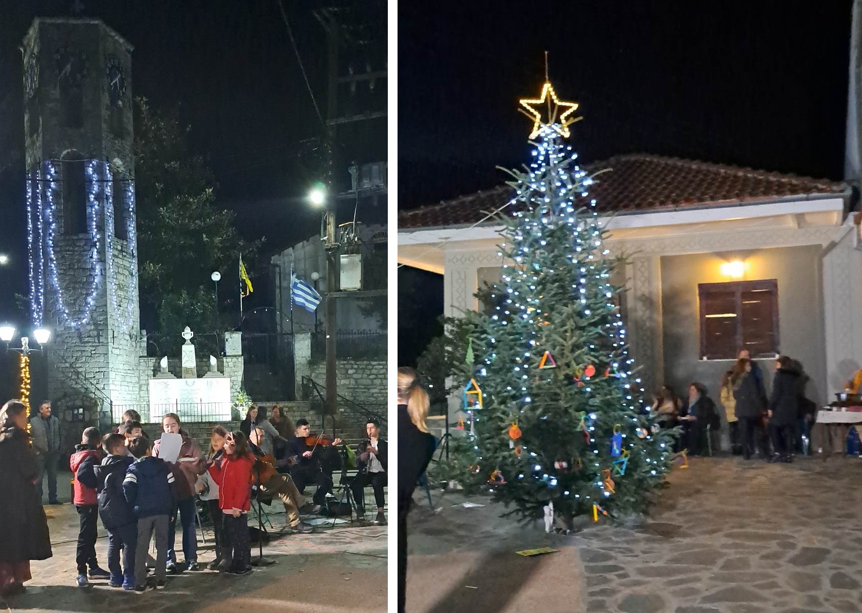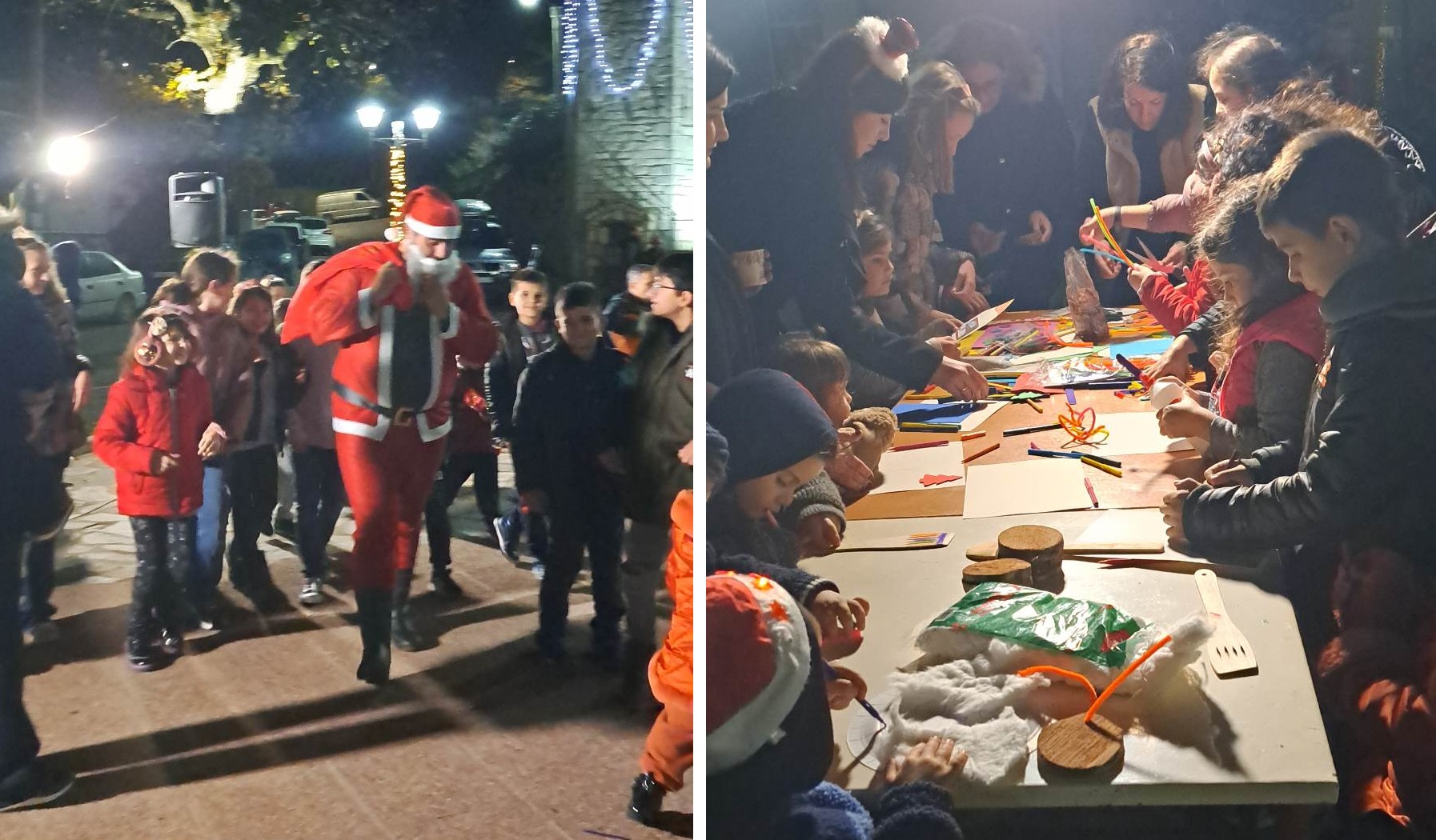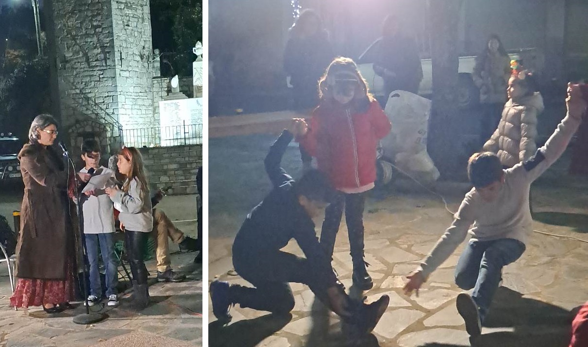 Το πρόγραμμα είχε πολλά και διάφορα… όπως Άη Βασίλη που μοίρασε δώρα, ζωγραφική προσώπου, χειροτεχνίες για στολίδια που διακόσμησαν το δένδρο και ημερολόγια, τα παιδιά είπαν τα κάλαντα, ενώ το μουσικό σχήμα της οικογένειας Γεωργίου Καλλίκα επιμελήθηκε το μουσικό πρόγραμμα με την μαμά Χριστίνα Μπουρλάκη στο τραγούδι. Δεν έλειψαν τα ζεστά ροφήματα, ρακόμελο, κρασί, τσάι, τα πατροπαράδοτα γλυκά των ημερών, ενώ δεκάδες ήταν τα φαναράκια των ευχών που αφέθηκαν στον ουρανό.