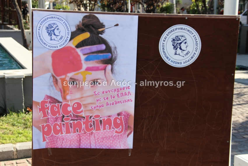 Μία όμορφη δράση για τα παιδιά έλαβε χώρα σήμερα το πρωί και θα συνεχιστεί τις επόμενες ημέρες στην κεντρική πλατεία Αλμυρού. Σε συνεργασία του Δήμου Αλμυρού με την Ένωση Εμπορικού και Επιχειρηματικού Συλλόγου Αλμυρού και το 1ο ΕΠΑΛ Αλμυρού, οι μικροί μας φίλοι είχαν την ευκαιρία να ζωγραφίσουν το πρόσωπό τους …με χιονανθρώπους, Χριστουγεννιάτικα δένδρα, ξωτικά κι άλλα πολλά σχέδια!