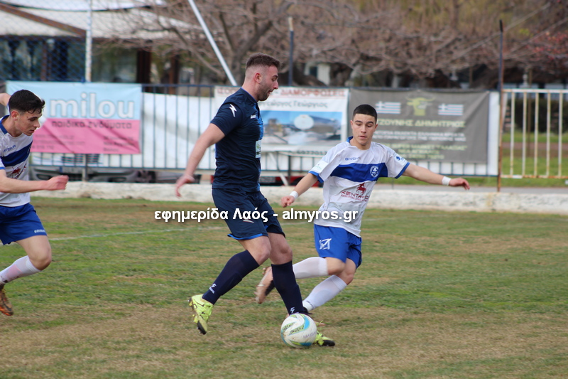0-1 στο 43′. Ο Αραπίτσας εκτέλεσε φάουλ από πολύ μακριά και η μπάλα κατέληξε στα δίχτυα με αυτογκόλ του Διαμαντένια. Πατούσε καλύτερα ο Αλμυρός στο πρώτο μέρος, ήταν πιο απειλητικός και πήγε με το προβάδισμα στην ανάπαυλα, σε ματς χωρίς φάσεις κι ευκαιρίες.
