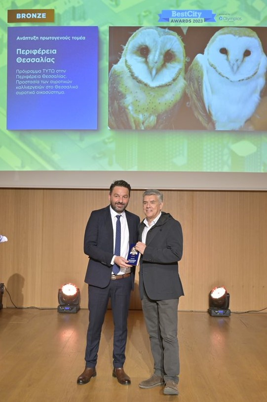 -για το πρόγραμμα προστασίας αγροτικών καλλιεργειών ΤΥΤΩ και διαχείρισης του πληθυσμού των τρωκτικών στο θεσσαλικό αγροτικό οικοσύστημα με σύμμαχο τη φύση και τις φυσικές διεργασίες, στην κατηγορία «Ανάπτυξη Πρωτογενούς Τομέα».