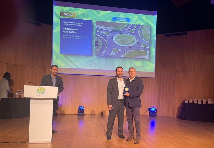 – για τους 16 κυκλικούς κόμβους που σχεδίασε, χρηματοδότησε και κατασκεύασε στην πόλη της Λάρισας, στην κατηγορία «Ισόπεδοι και Ανισόπεδοι Κυκλοφοριακοί Κόμβοι»