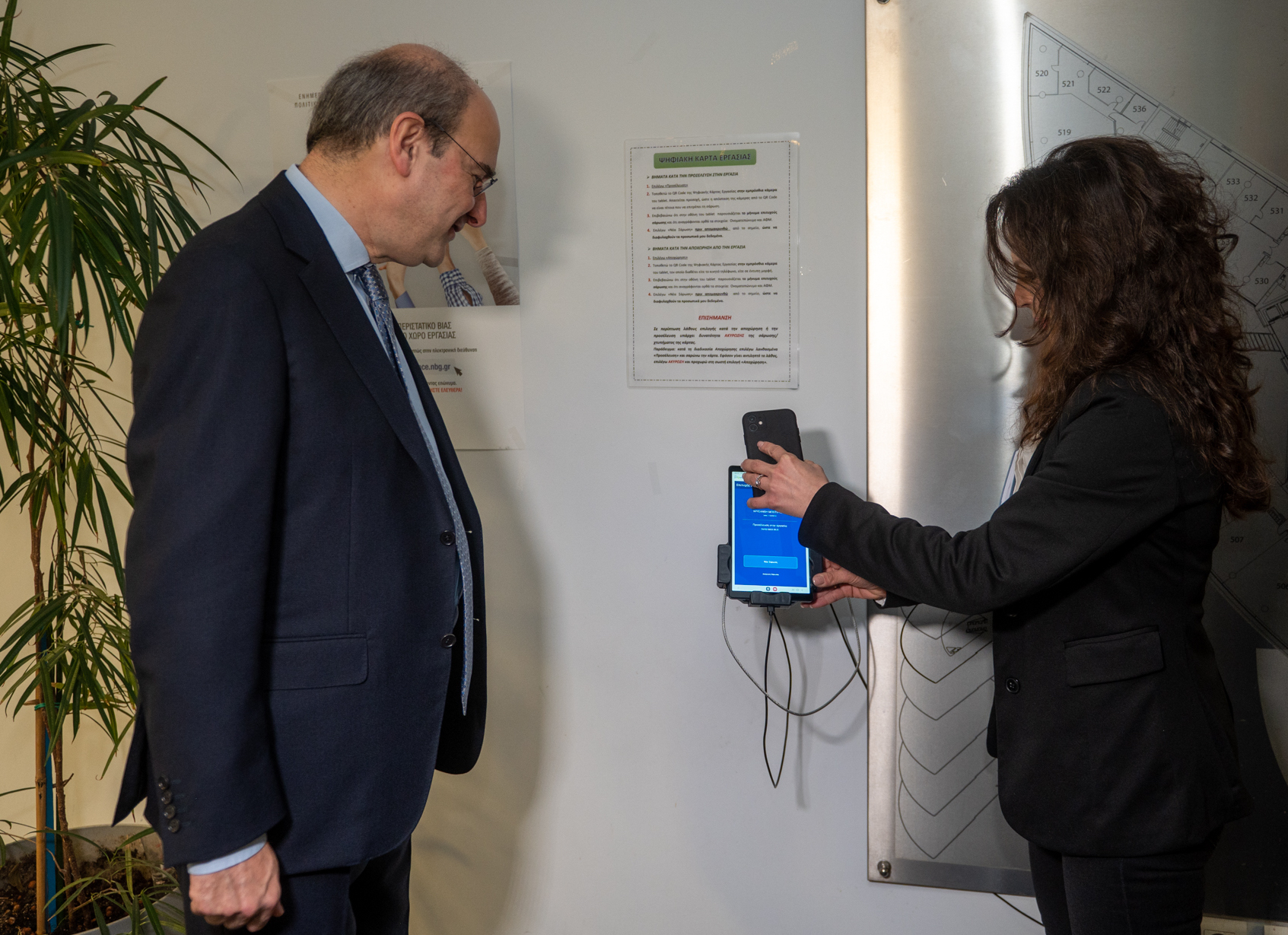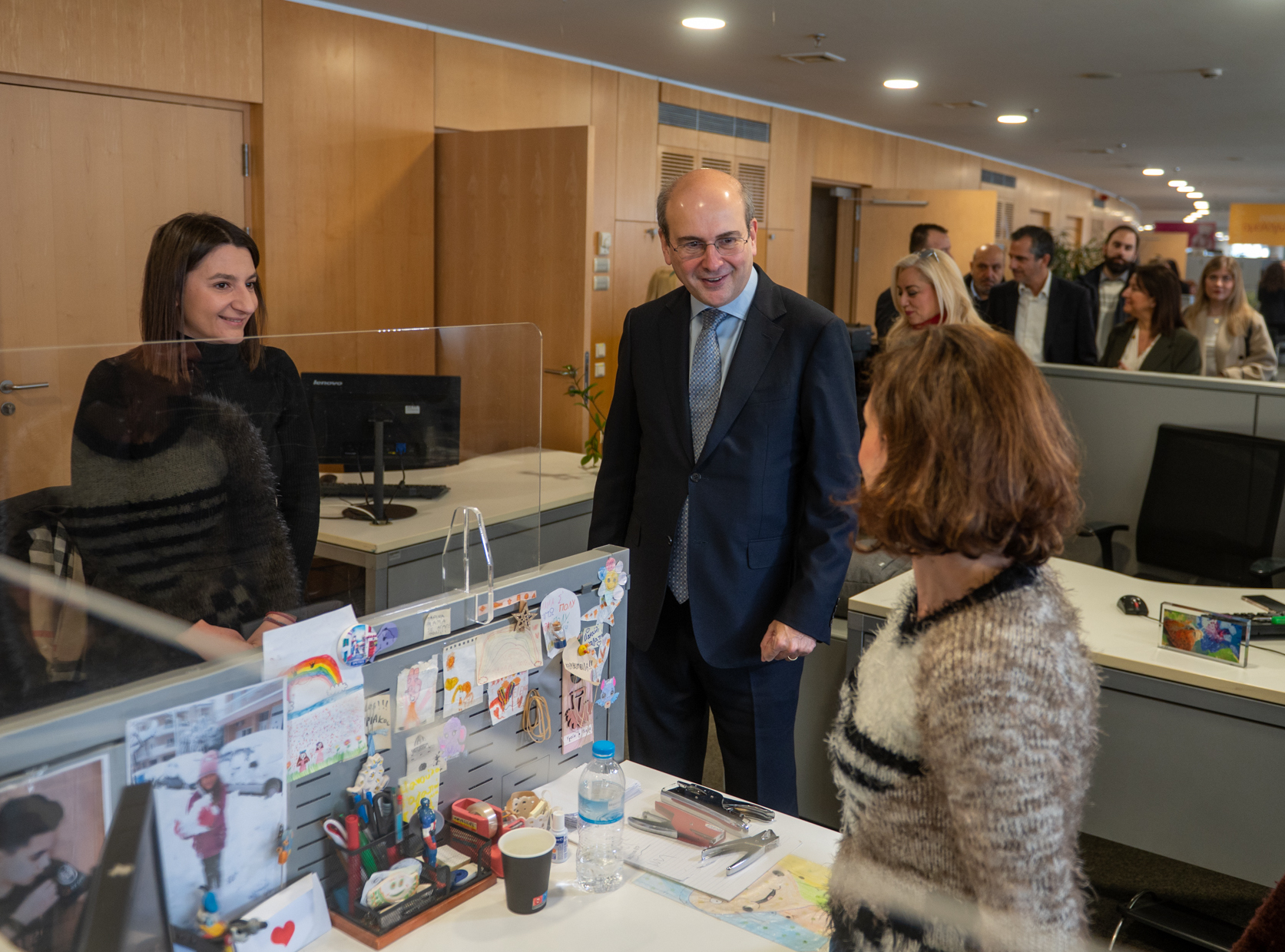 Ο κ. Χατζηδάκης συνομίλησε με στελέχη και εργαζόμενους της Εθνικής Ασφαλιστικής, οι οποίοι τόνισαν ότι το σύστημα εφαρμόζεται χωρίς προβλήματα και οι όποιες τεχνικές δυσκολίες αντιμετωπίζονται σε συνεννόηση με το Υπουργείο Εργασίας και Κοινωνικών Υποθέσεων. Σημείωσαν δε ότι η διεύρυνση εφαρμογής του μέτρου θα συμβάλει στην καταπολέμηση της μαύρης εργασίας.