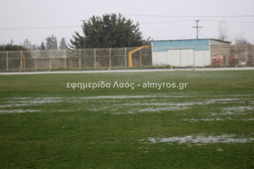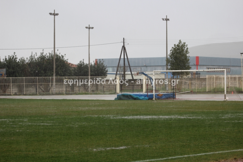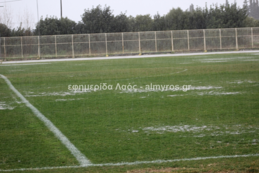 Και πολύ καλά έκανε -κατά τη γνώμη μας- για τη σωματική ακεραιότητα των ποδοσφαιριστών, εν αντιθέσει με άλλες περιπτώσεις που στον Αλμυρό είδαμε αγώνα πόλο… αναφερόμαστε στο Δήμητρα-Ακρόπολη του πρώτου γύρου. Δείτε παρακάτω τις φωτογραφίες στο γήπεδο Αλμυρού σήμερα στις 14:50 όπως τις κατέγραψε ο φωτογραφικός φακός του “Λαού”.