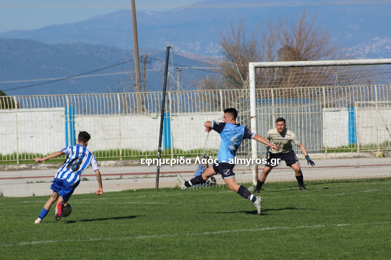 Ωραίο σουτ λίγο άουτ από τον Μιχόπουλο στα πρώτα δευτερόλεπτα της επανάληψης και φθάσαμε στο 52′ όταν η Ακρόπολη μείωσε με ένα πολύ ωραίο γκολ του Χρυσαφόπουλου, ο οποίος ελίχθηκε από τα αριστερά και σούταρε στο “παραθυράκι”.