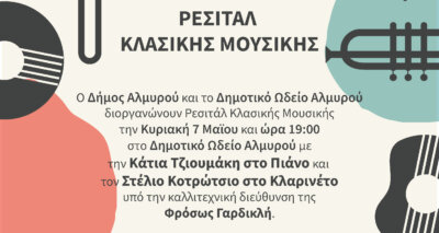 Με δυο καταξιωμένους δεξιοτέχνες ανοίγει ο Μουσικός Μάιος στο Δημοτικό Ωδείο Αλμυρού