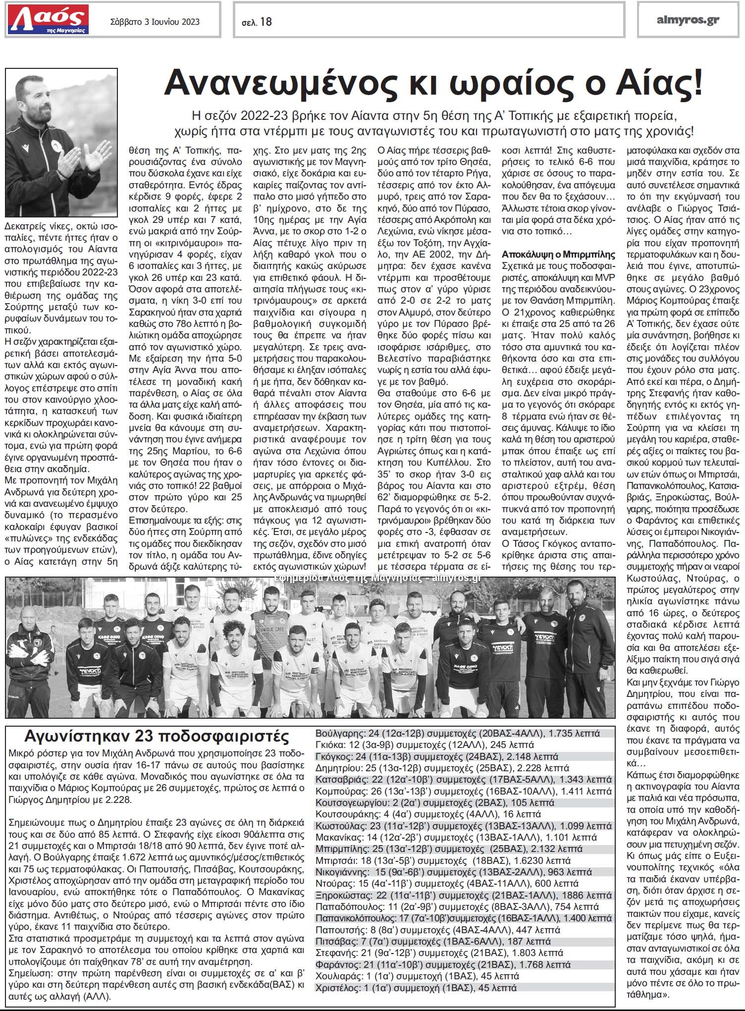 Ανανεωμένος κι ωραίος! To αφιέρωμα του “Λαού” στον Αίαντα Σούρπης 2022-23