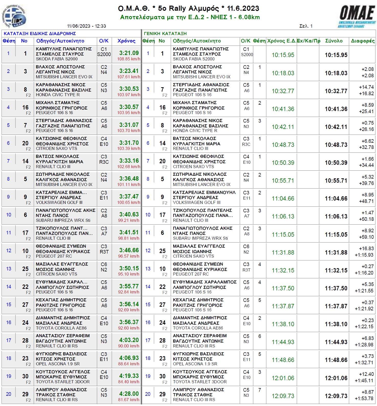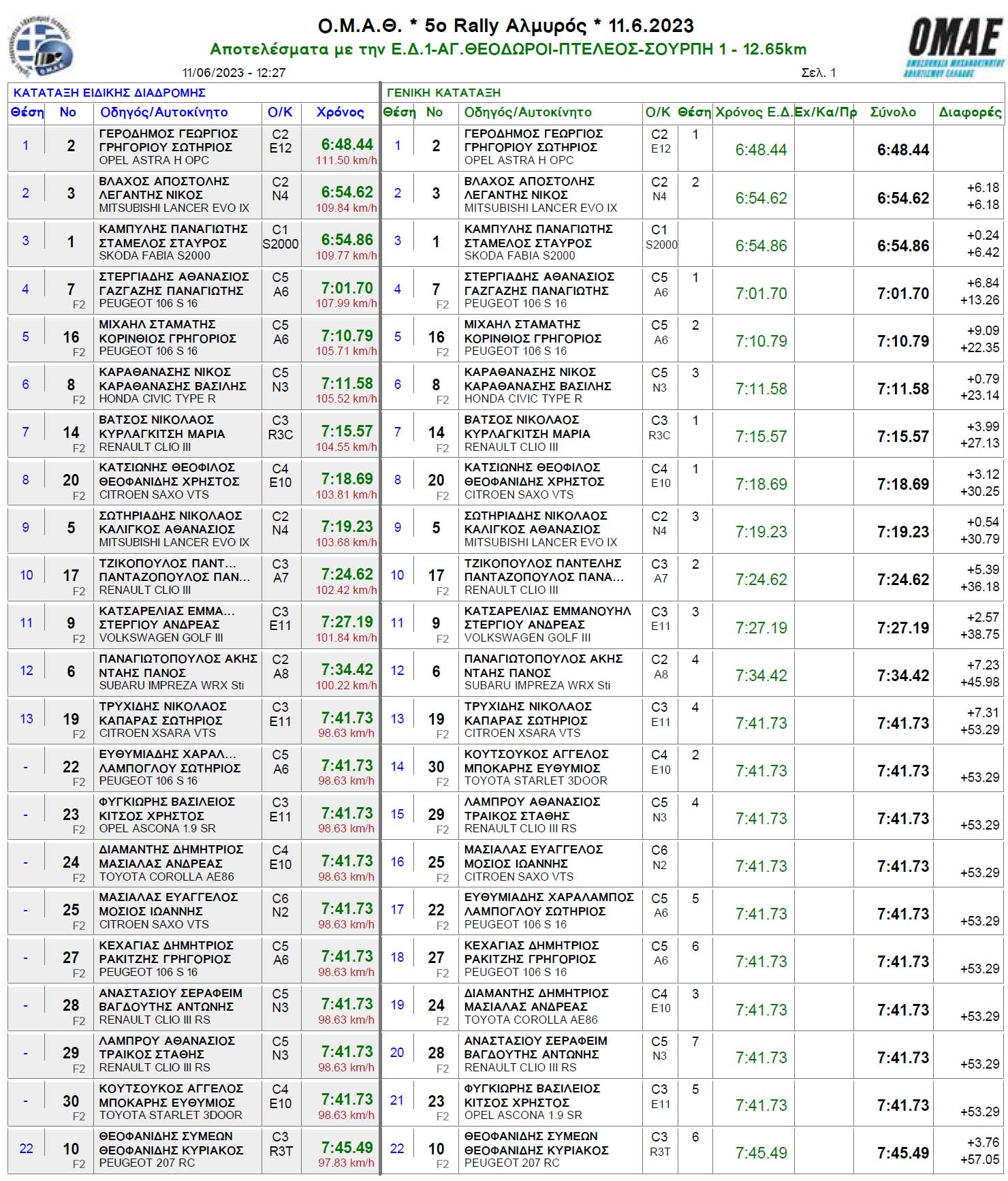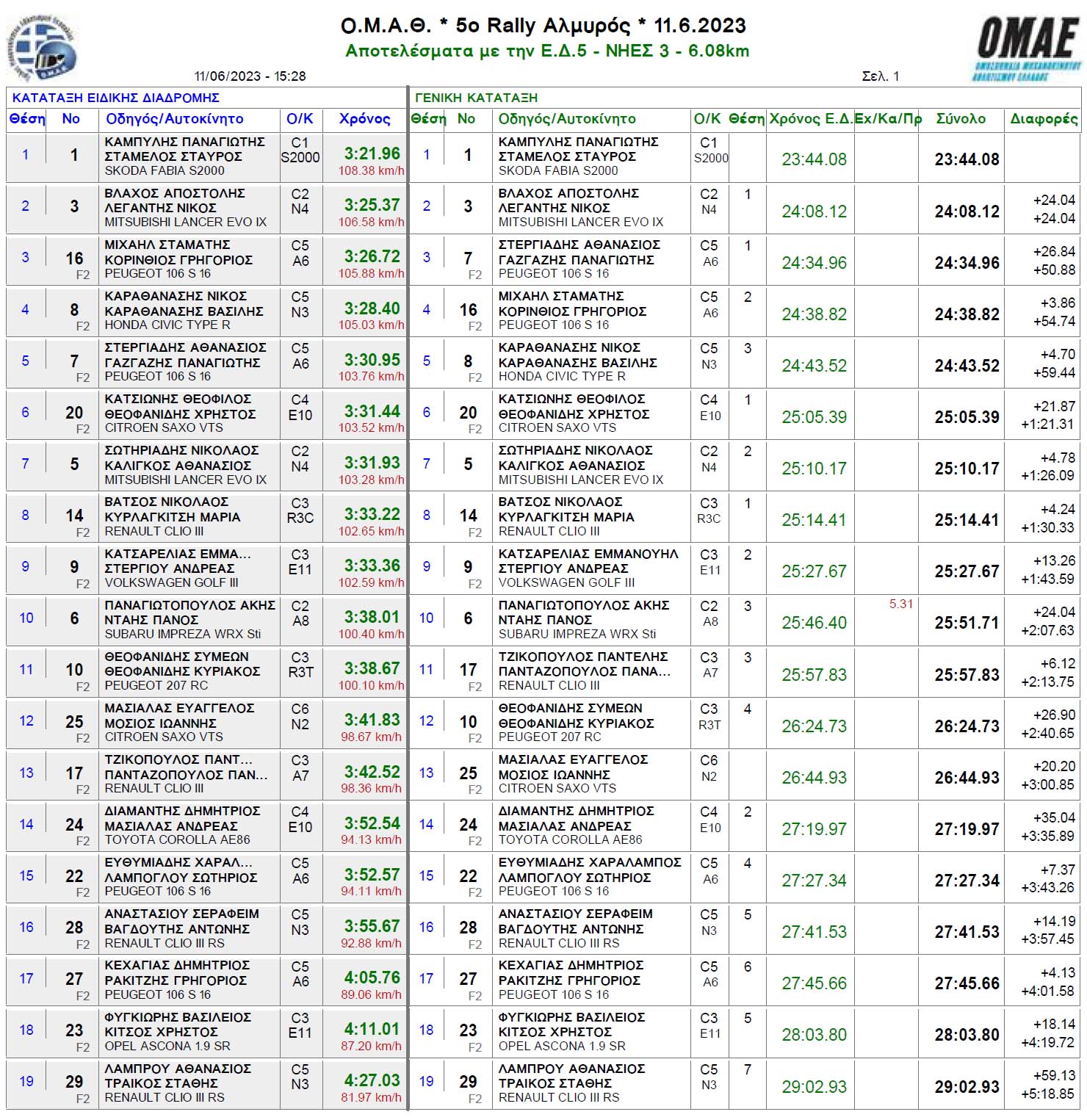Ράλι Αλμυρός: 25 αυτοκίνητα πήραν εκκίνηση, τερμάτισαν 19 – Αποτελέσματα κάθε ειδικής διαδρομής