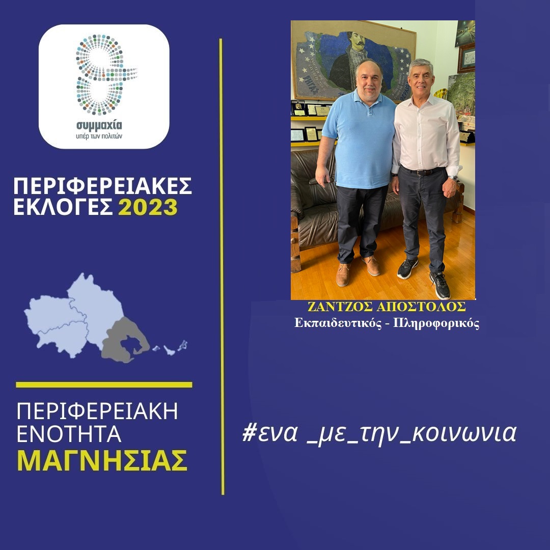 Ο εκπαιδευτικός Απόστολος Ζάντζος υποψήφιος περιφερειακός σύμβουλος στη Μαγνησία με τον Κώστα Αγοραστό