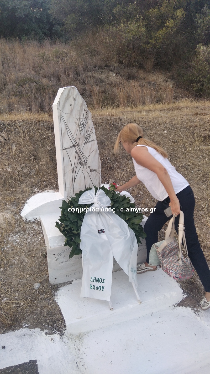 Ο πατέρας Αθανάσιος τέλεσε επιμνημόσυνη δέηση στο μνημείο που βρίσκεται στον δρόμο προς Βόλο λίγο έξω από την πόλη. Το «παρών» έδωσαν η πρόεδρος του τοπικού συμβουλίου Βάσω Πυργάνη-Παρασκευοπούλου, ο υποψήφιος περιφερειακός σύμβουλος Θοδωρής Στάμος, ο δημοτικός σύμβουλος Βόλου Θανάσης Ακρίβος, η πρόεδρος του Φιλοπρόοδου Βαλασία Πετρίδη και μέλη του συμβουλίου, καθώς επίσης και κάτοικοι της Νέας Αγχιάλου. Ξεχωριστή στιγμή όταν ο λαογράφος/συγγραφέας Γιώργος Δημητρίου, ο οποίος ως έφηβος έζησε τα γεγονότα, ανέγνωσε τα ονόματα των πεσόντων: