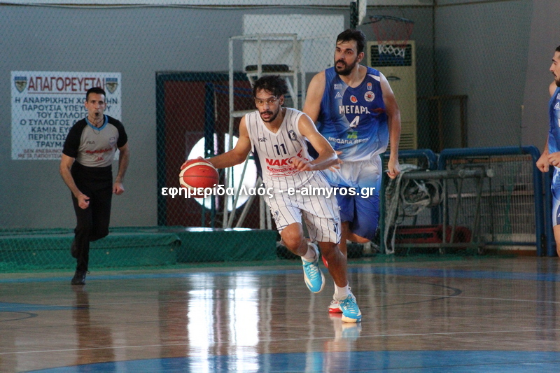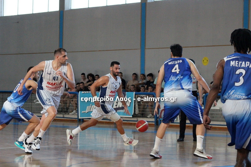 Η διαδρομή στη διοργάνωση του Κυπέλλου Ελλάδος ολοκληρώθηκε για την ομάδα του Αλμυρού. Στο κλειστό της πόλης σήμερα Σάββατο 30/9, το εμπόδιο της ΝΕ Μεγαρίδας ήταν αξεπέραστο αφού ο αντίπαλος που αγωνίζεται δύο κατηγορίες παραπάνω, είχε άνετο πέρασμα στην επόμενη φάση. Φιλότιμη προσπάθεια από τους παίκτες του Λουκά Ζαρονικόλα που κυνηγούσαν μεγάλες διαφορές σε όλο το ματς. Τελικό σκορ 63-93.