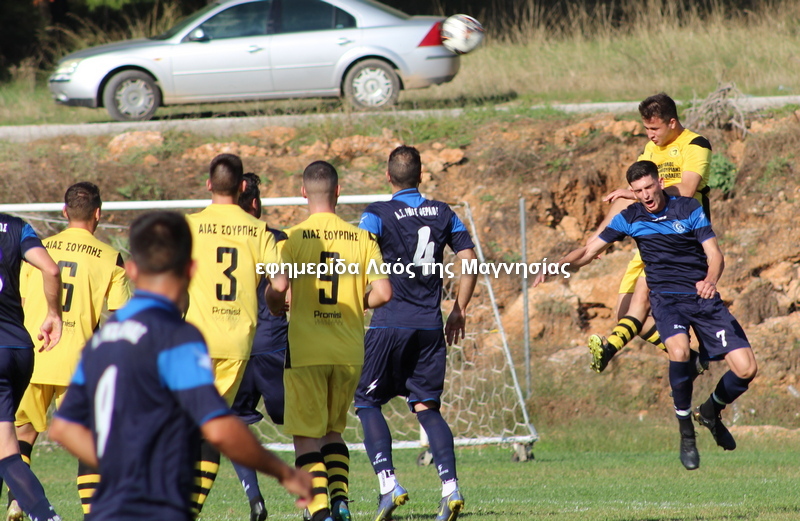 Αίας εναντίον Ρήγα Φεραίου σήμερα το μεσημέρι, Σάββατο 14/10, στο γήπεδο της Σούρπης και πρώτη ισοπαλία για τις δύο ομάδες στο πρωτάθλημα. Στην επανάληψη τα γκολ: προηγήθηκαν νωρίς οι Βελεστινλιώτες με τον Χαλιμούρδα, ισοφάρισαν λίγο πριν τη λήξη οι Σουρπιώτες με ωραίο γκολ του Ντούρα.