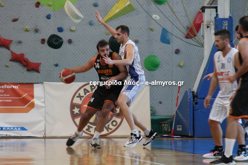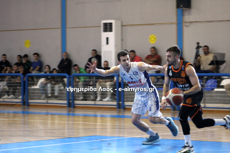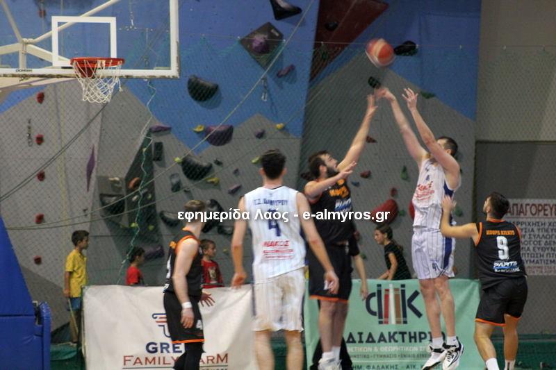 Ο Παπούλιας με ένα δυναμικό μπάσιμο διαμόρφωσε το 18-11 στο 12ο λεπτό, αλλά με βολές του Παπαδόπουλου και τρίποντο του Θεοδωράκου, η φιλοξενούμενη ομάδα έριξε τη διαφορά στο καλάθι. Σκορ 19-16 με λέι απ του Πολίτη σε ασίστ Μασούρα στο 15:35 όταν είχαμε τάιμ άουτ και μετά 21-16 όταν ο Πολίτης έγινε δημιουργός και ο Πελεκούδας τελείωσε τη φάση. Με μικρό σερί 6-0, ο Αλμυρός προηγήθηκε με 9. Όπως και στην πρώτη περίοδο, έτσι και στη δεύτερη, η Κού.Πα. πήρε πόντους από βολές του Παπαδόπουλου που είχε 6/6 σε αυτό το διάστημα του αγώνα. Διψήφια διαφορά 29-18 στο 17:30, 31-18 με λέι απ του Μαμούρα στον αιφνιδιασμό και το ημίχρονο έληξε με σκορ 36-22 καθώς ο Παπουτσής πέτυχε δύσκολο καλάθι υπό πίεση.