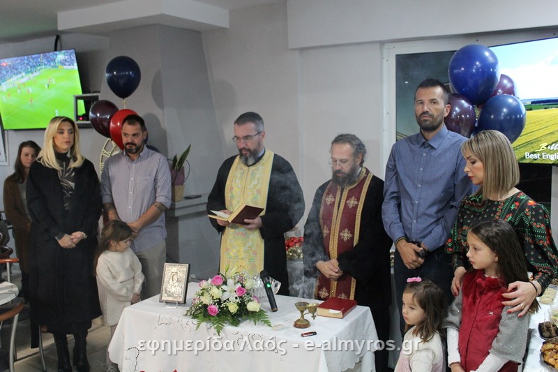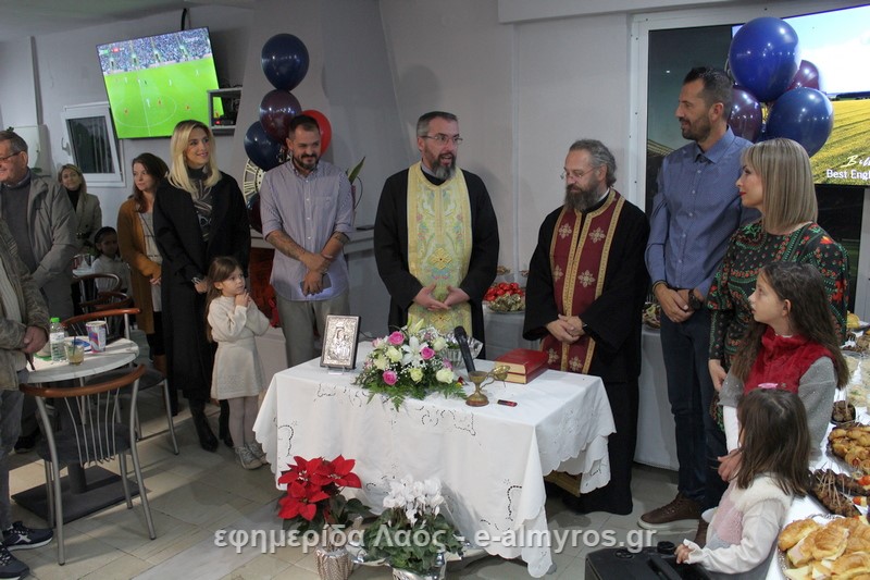 Οι πατέρες Ευστάθιος Βαρβαρέλης και Γεώργιος Γιαννιός τέλεσαν τον Αγιασμό κι ακολούθως οι δύο ιδιοκτήτες της ακαδημίας απηύθυναν τον χαιρετισμό τους.