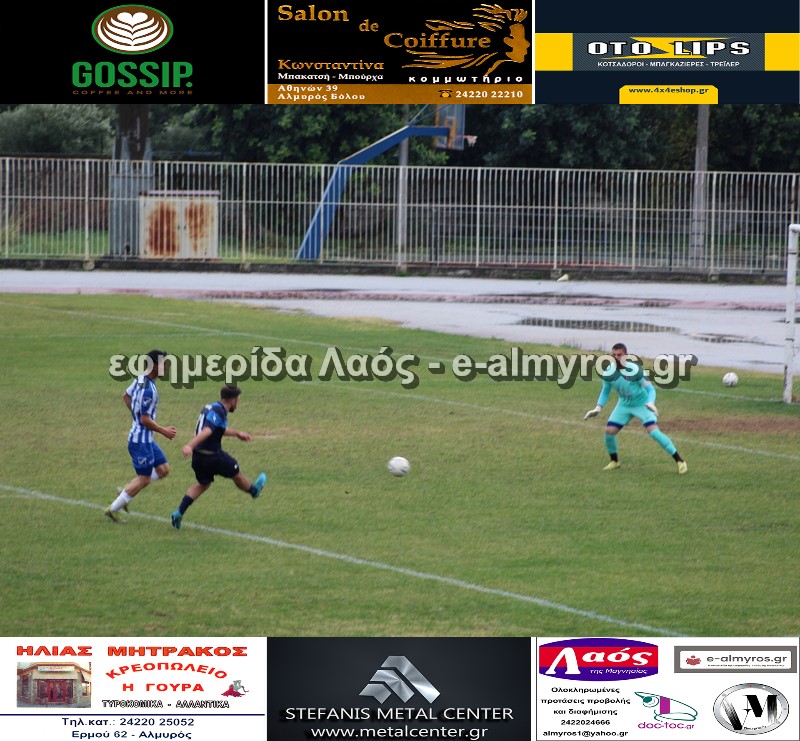 Στο 7ο λεπτό, σε ένα φάουλ του Σπαθή, ο Κρίκης πρόλαβε να διώξει την τελευταία στιγμή πριν ο Κολυμήτρας σουτάρει από κοντά σε άδειο τέρμα. Ο Κοντογεωργάκης νίκησε τον Χαλιμούρδα σε τετ-α-τετ από πλάγια θέση στο 18′, ο γκολκίπερ του Αλμυρού απέκρουσε με το σώμα το σουτ, από το ύψος της μεγάλης περιοχής, του μεσοεπιθετικού του Ρήγα.