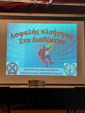 Την Πέμπτη 21 Δεκεμβρίου 2023 πραγματοποιήθηκε στο Πολιτιστικό Κέντρο Αλμυρού ενημέρωση σχετικά με την ασφαλή πλοήγηση στο Διαδίκτυο. Ο κ. Σκόνδρας Γεώργιος, Ανθυπαστυνόμος της Υποδιεύθυνσης Ασφαλείας Βόλου, ανταποκρινόμενος στην πρόσκλησή μας ενημέρωσε τους μαθητές μας για θέματα ασφαλούς πλοήγησης στο διαδίκτυο και απάντησε σε κάθε τους απορία.