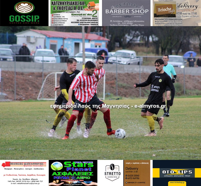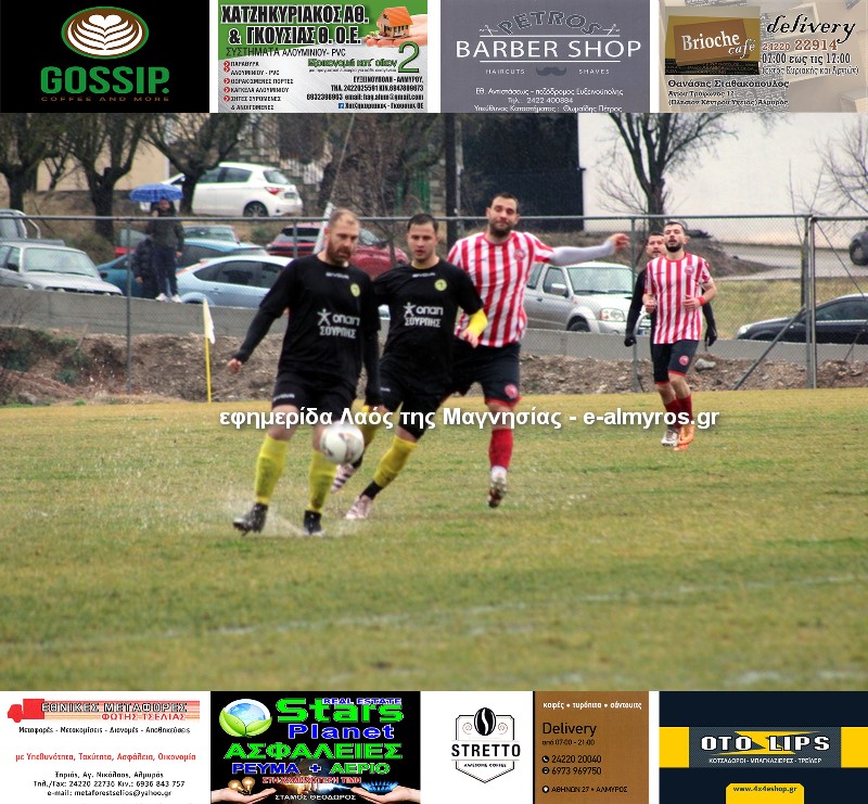 Καλύτερος ο Ολυμπιακός Βόλου, πέρασε με 0-2 από το γήπεδο της Σούρπης. Ο αγώνας έγινε σε βαρύ αγωνιστικό χώρο και με βροχή, η μπάλα κολλούσε σε πολλά σημεία όπως μπορείτε να δείτε στις φωτογραφίες μας, οπότε ο νικητής θα κρίνονταν από τη δύναμη, το πάθος, την ένταση και όχι την τεχνική. Οι “ερυθρόλευκοι” έμπαιναν πιο δυνατά στις μονομαχίες και ήταν συνεχώς στην επίθεση.