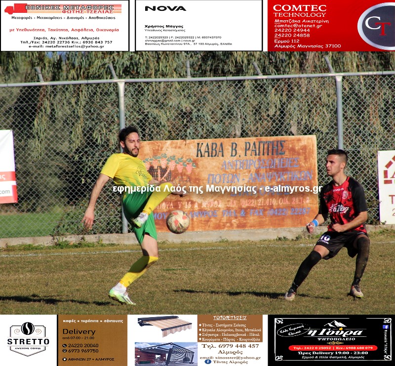 Στην τελευταία αγωνιστική του πρώτου γύρου έσπασε το αήττητο των Μυρμηδόνων, από την Δάφνη. Η βολιώτικη ομάδα κέρδισε 1-3 στο γήπεδο του Πλατάνου κι έπιασε την Δήμητρα στην κορυφή της Β’ Τοπικής (…και παίζουν μεταξύ τους την επόμενη εβδομάδα). Για να φθάσει στο σπουδαίο διπλό, το σύνολο του Ντένη Κουκουβίνου χρειάστηκε …τη βοήθεια των Μυρμηδόνων καθώς τα δύο πρώτα γκολ ήταν αυτογκόλ (το τρίτο καταπληκτικό από τον Καρεσίου), ενώ από το 66′ οι Πλαταναιώτες έπαιζαν με δέκα παίκτες λόγω αποβολής του γκολκίπερ τους.