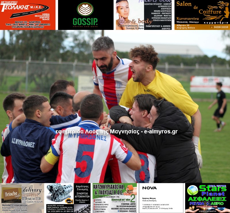 Μυρμηδόνες: Τούντορ, Ζαντιώτης, Κατσαβριάς, Χριστέλος, Κοντοβάς, Βούλγαρης (75′ Μάντζαρης), Κομπούρας (90′ Τιμπλαλέξης), Τίτου, Κλουκουτάρας, Μακρής, Τσόγκας (64′ Τόπας).
