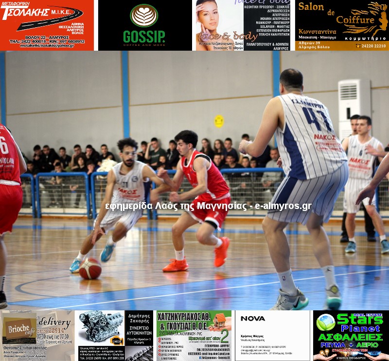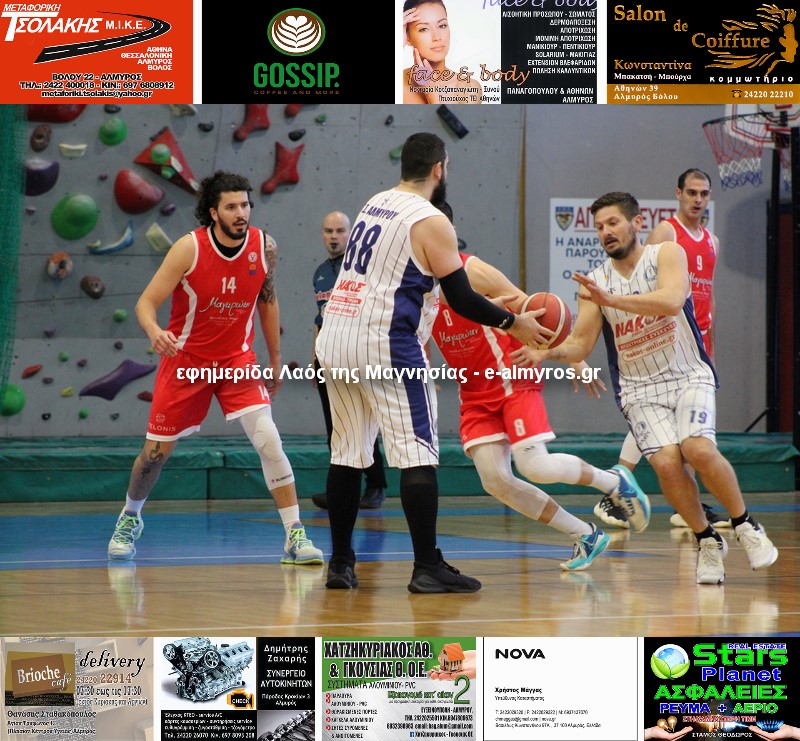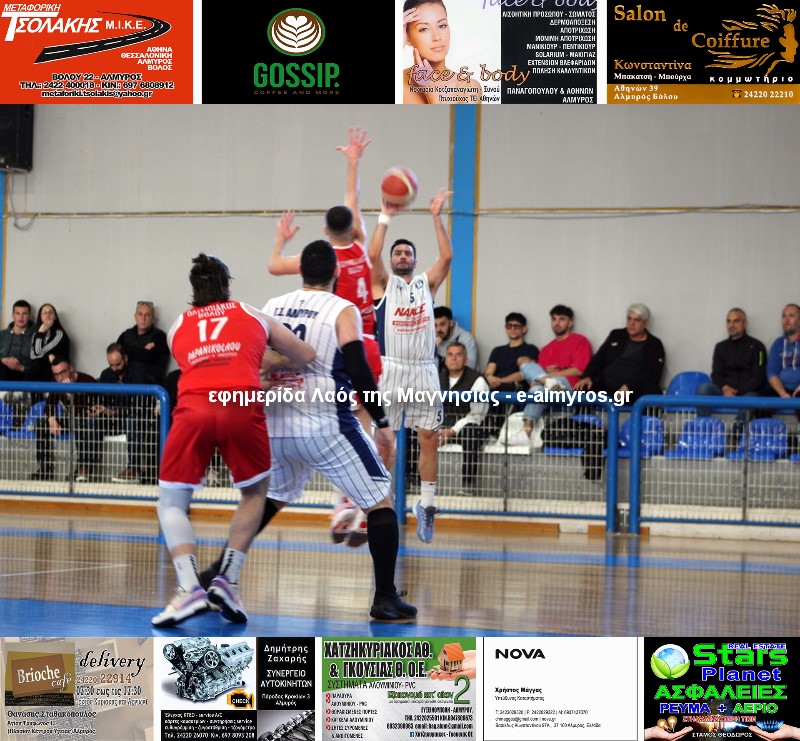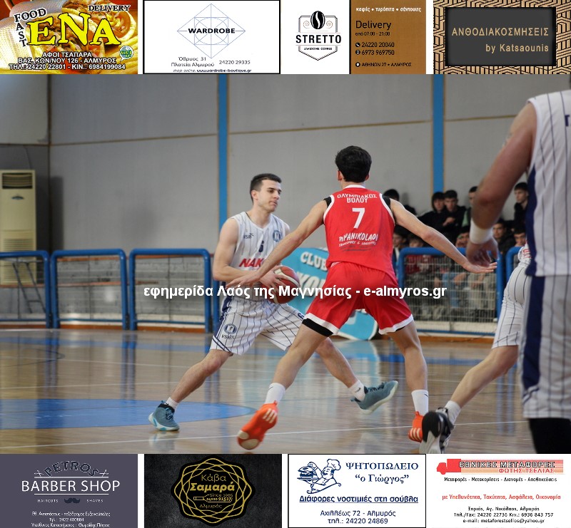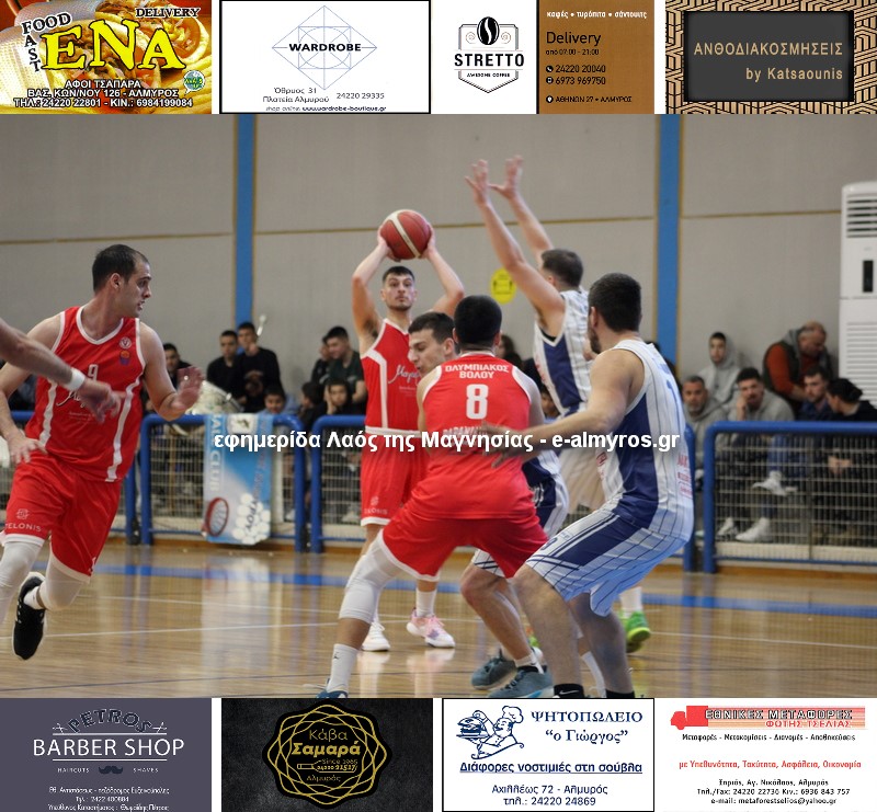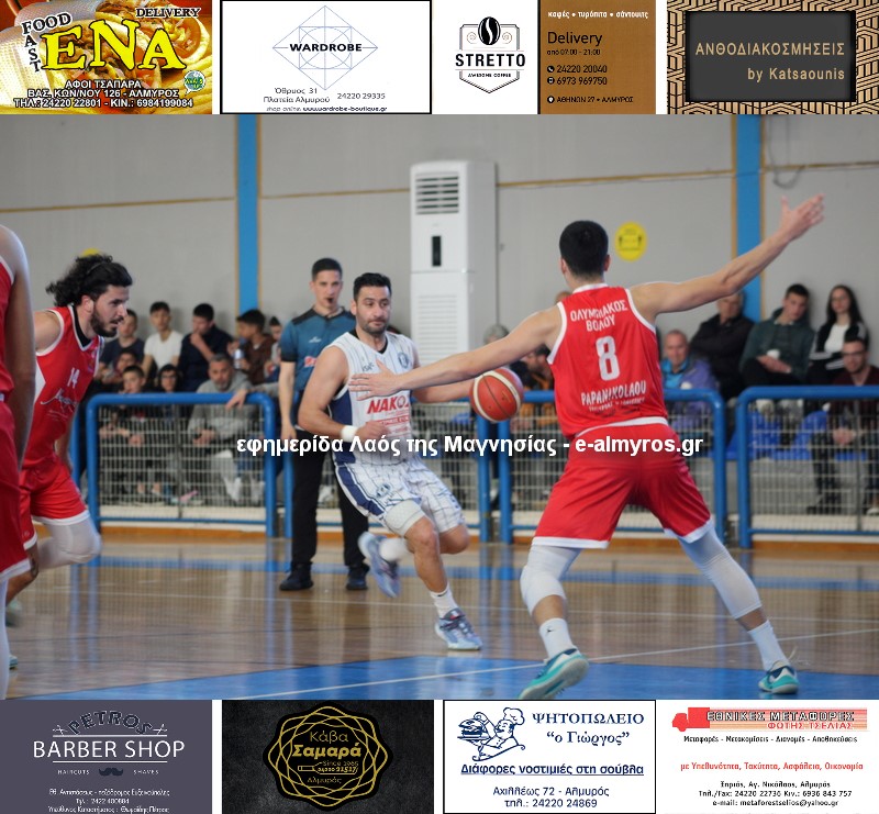 Ολυμπιακός Βόλου (Κοσμάτος): Νυδριώτης 9 (3/3β., 3/8δ., 0/3τρ.), Στεφόπουλος 7 (2/2β., 1/4δ., 1/3τρ.), Μαλακόπουλος 11 (1/1β., 2/3δ., 2/6τρ.), Λογοδότης 17 (5/8β., 3/6δ., 2/3τρ.), Παρασχάκης, Πλεσιώτης, Πρέλεβιτς, Σπανόπουλος 2 (1/6δ., 0/1τρ.), Τζαλαβάρας 6 (2/2β., 2/6δ.), Σιδηρόπουλος 12 (5/12β., 2/3δ., 1/3τρ.).