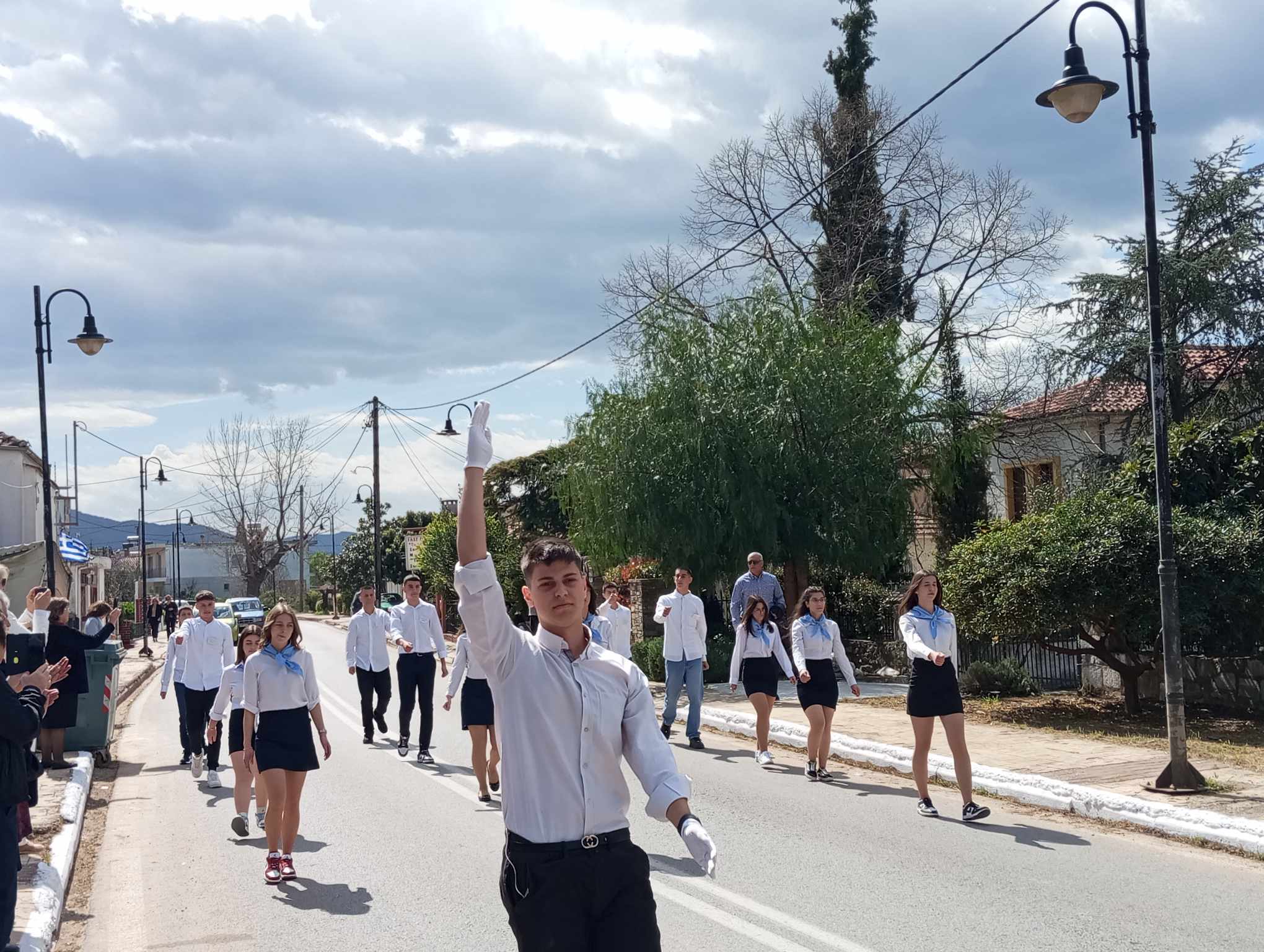 Με παραδοσιακές στολές κι εμβληματικές σημαίες οι μαθητές Γυμνασίου-Λυκείου Σούρπης στην παρέλαση
