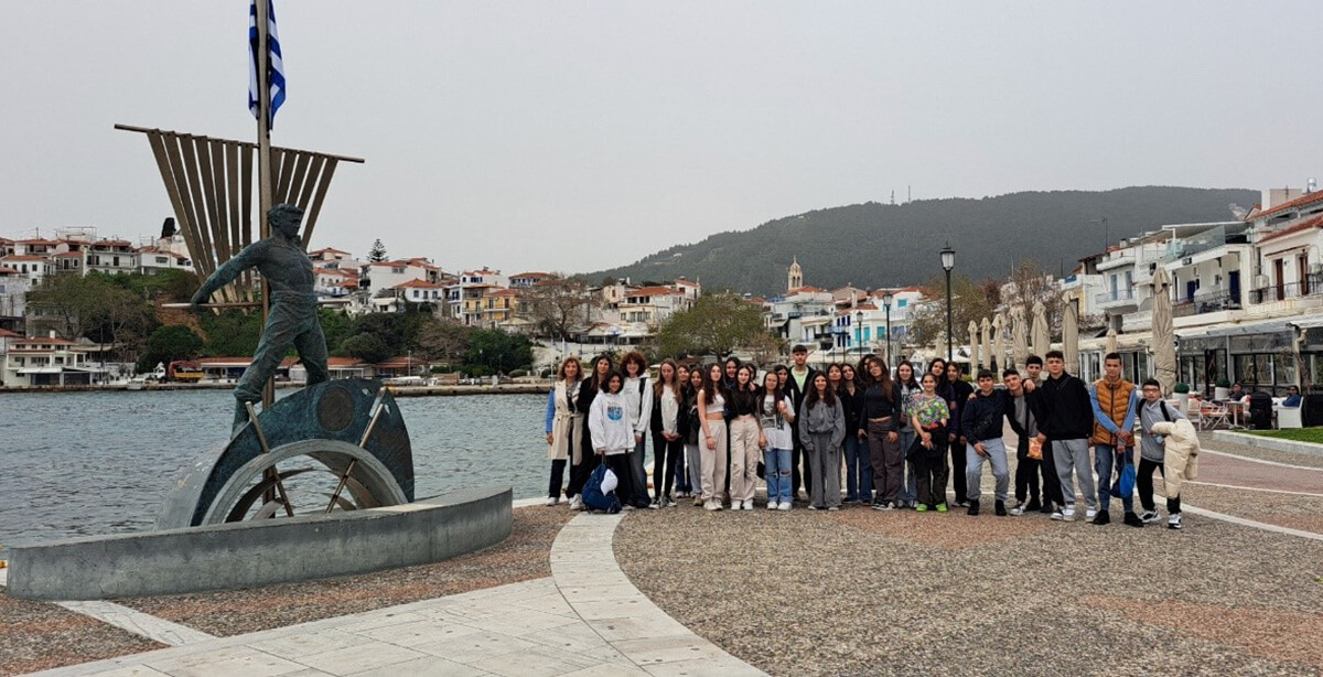 Το διήμερο 28 – 29 Μαρτίου 2024, οι μαθητές μέλη των Προγραμμάτων Περιβαλλοντικής Εκπαίδευσης του Γυμνασίου Νέας Αγχιάλου ταξίδεψαν στο καταπράσινο νησί των Σποράδων, πατρίδα του Παπαδιαμάντη, τη Σκιάθο. Στα πλαίσια διασχολικής συνεργασίας με το Γυμνάσιο της Σκιάθου η διευθύντρια του Γυμνασίου Σκιάθου κα Αικατερίνη Τόκα, ο υποδιευθυντής κος Ζήκος Ιωάννης και οι μαθητές τους υποδέχτηκαν και ξενάγησαν στο νησί τους με έναν μοναδικό και ξεχωριστό τρόπο την περιβαλλοντική ομάδα του Γυμνασίου Νέας Αγχιάλου.