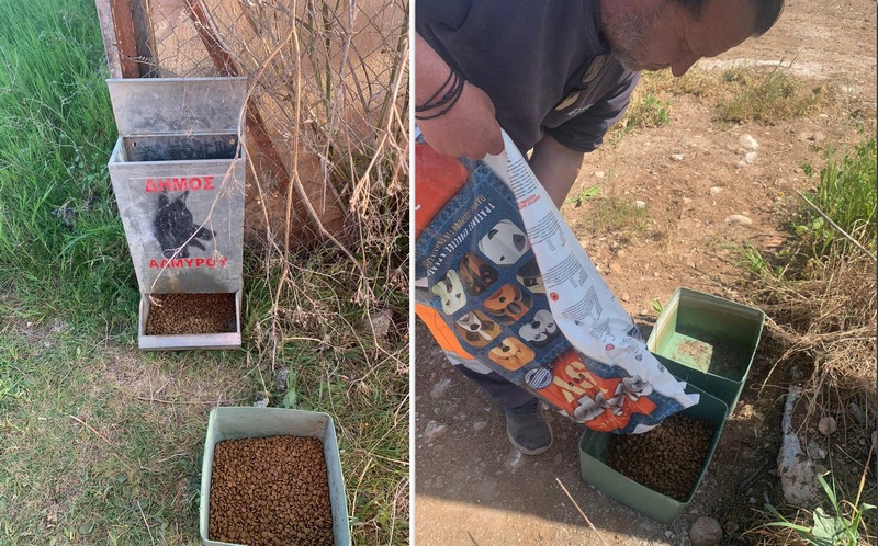 Πρόσθεσε ακόμη πως τα αδέσποτα σιτίζονται καθημερινά από τον Δήμο ο οποίος διαθέτει υπάλληλο επιφορτισμένο αποκλειστικά με την παροχή τροφής και νερού σε αυτά (παρά το γεγονός πως οι ταΐστρες-ποτίστρες έχουν κλαπεί τρεις φορές από αγνώστους) καθώς επίσης στα ελάφια και τα παγώνια του δάσους Κουρί.
