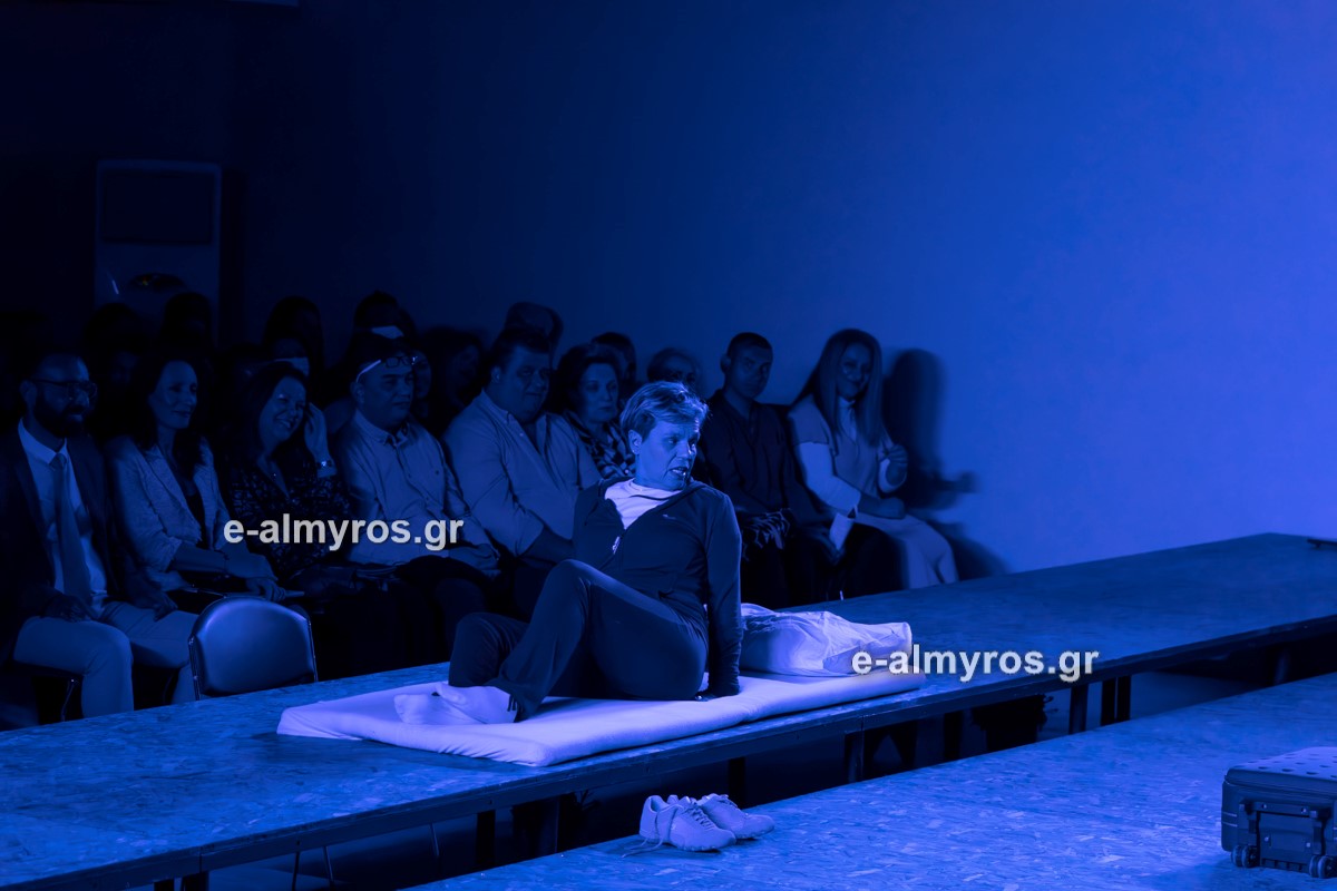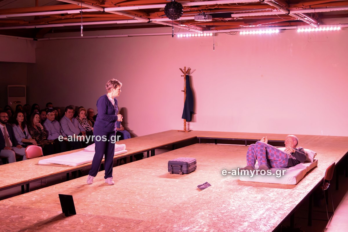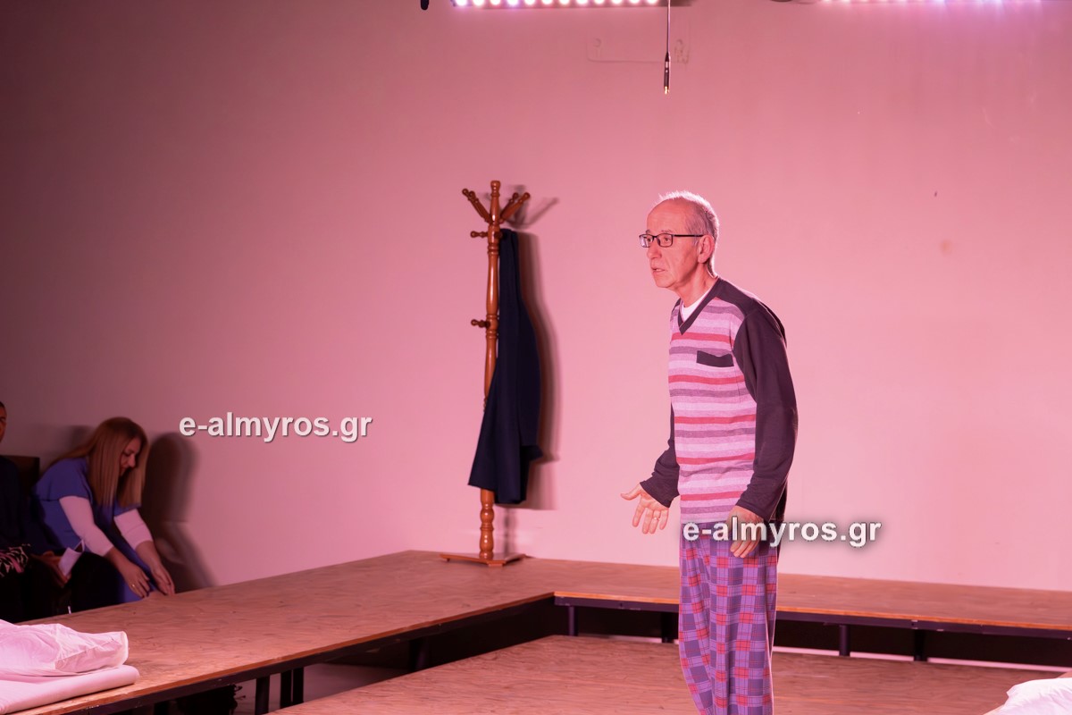 Συνολικά 31 άνθρωποι συνεργάσθηκαν στους φετινούς Σκηνοπαίκτες και άλλοι 13 στα παρασκήνια για να προκύψει το αλησμόνητο θεατρικό τετραήμερο στις αρχές Απριλίου στο Πολιτιστικό κέντρο του Αλμυρού. Ολοι μαζί στις πρόβες δημιουργούσαν, πρότειναν και ιδέες στον σκηνοθέτη που είχε πάντα τον τελευταίο λόγο. Το σκηνικό τρεις ημέρες πριν την παράσταση φορτώνεται για το Πολιτιστικό κέντρο, ο θίασος «κατηφορίζει» και δύο εξαντλητικές πρόβες για την τελική ευθεία. Μια τεχνική -φώτα, ήχος, φροντιστήριο- και μια γενική, όλα έτοιμα και με τα βίντεο, τα τραγούδια, οι μουσικές επί σκηνής. Πρόβες από τις 5 ως τις 12 το βράδυ. Απ’ όλες τις τέχνες, το θέατρο είναι η πιο μεταφυσική επειδή είναι η πιο φευγαλέα. Στον κινηματογράφο, στις τηλεοπτικές σειρές, η τεχνολογία εξασφαλίζει διάρκεια, δεν “γερνούν” ποτέ οι ταινίες, τα σήριαλ. Η παράσταση όμως; Κρατάει όπως αυτή που ζήσαμε με τους Σκηνοπαίκτες δύο ώρες και σκορπίζεται μετά στον αέρα. Οι συντελεστές υποκλίνονται, το κοινό τούς φιλοδωρεί με χειροκροτήματα και έπειτα όλοι τους κατευθύνονται προς την έξοδο και ο χώρος αδειάζει. Γυρίζουμε στα σπίτια μας στην εργασία μας.