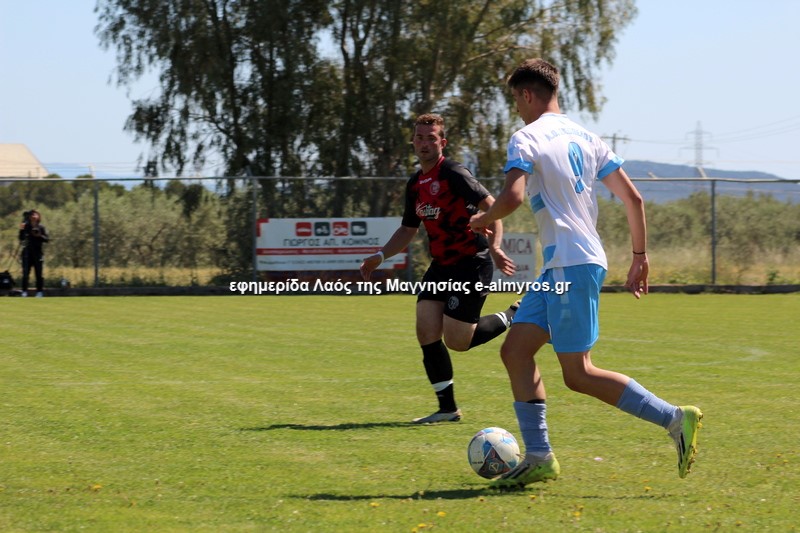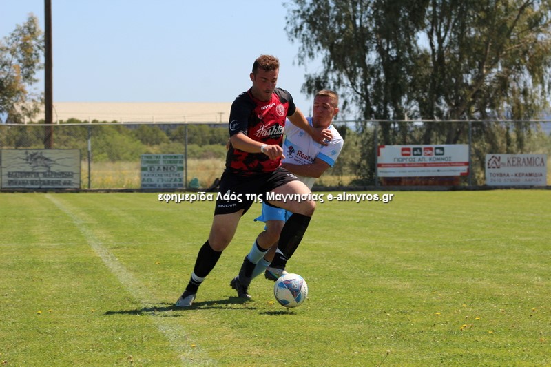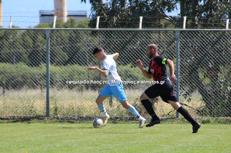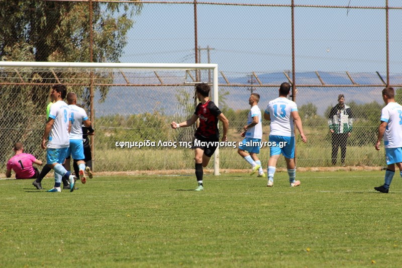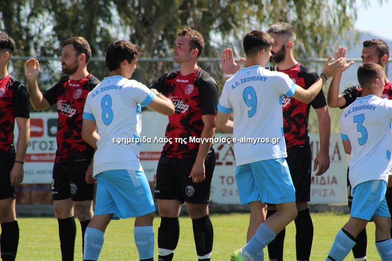 Πρώτη απειλή από τους νησιώτες στο 15’ με διαγώνιο σουτ του Τσουπαρέλου που πέρασε άουτ, ενώ στο 21’ σε φάουλ του Τσόγκα, κεφαλιά του Κλουκουτάρα έφυγε δίπλα από το δεξί κάθετο δοκάρι. Η Σκόπελος έκανε το 0-1 στο 28’ όταν ο Τσόγκας έδειχνε να έχει κερδίσει τη φάση αλλά έκανε λανθασμένο γύρισμα προς τον τερματοφύλακά του και σκόραρε ο Μηνάς με μακρινό πλασέ από δύσκολη, πλαϊνή θέση. Ο Παλαιολόγος εξουδετέρωσε δυνατό σουτ του Κομπούρα από το ύψος της μεγάλης περιοχής (30’), ενώ οι γηπεδούχοι είχαν καλή ευκαιρία στις καθυστερήσεις όταν σέντρα-σουτ του Κομπούρα κόντραρε κι απέκρουσε ο γκολκίπερ, ενώ μετά αμυντικός έβαλε στοπ στο σουτ του Κατσαβριά.