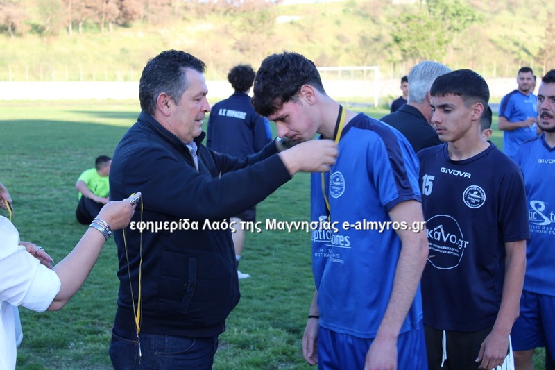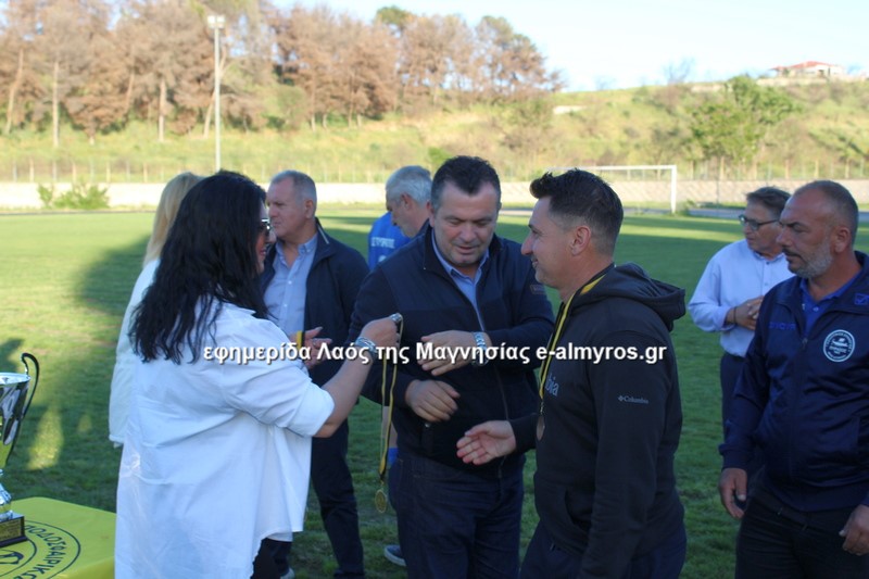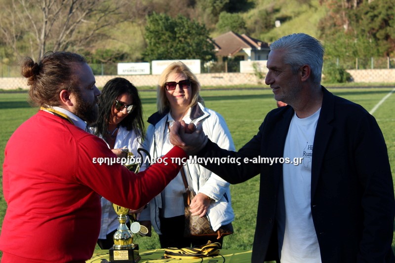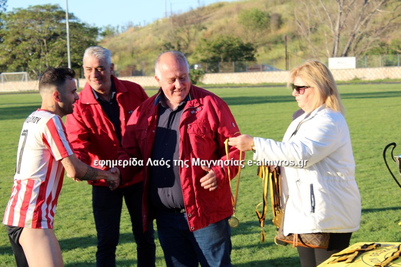 Στους φιναλίστ ποδοσφαιριστές, προπονητή και παράγοντες του Πυράσου την απονομή των μεταλλίων έκανε ο Βουλευτής Μαγνησίας Χρήστος Μπουκώρος, ενώ το τρόπαιο για τη συμμετοχή στον τελικό παρέλαβε ο Ροτζέριο.