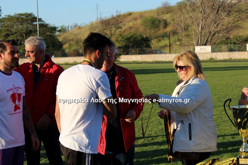 Στους κυπελλούχους του Ολυμπιακού, την απονομή μεταλλίων έκαναν ο Δήμαρχος Ρήγα Φεραίου Δημήτρης Νασίκας και ο πρόεδρος του δημοτικού συμβουλίου Χαράλαμπος Πάσχος.