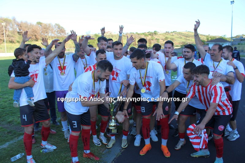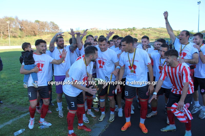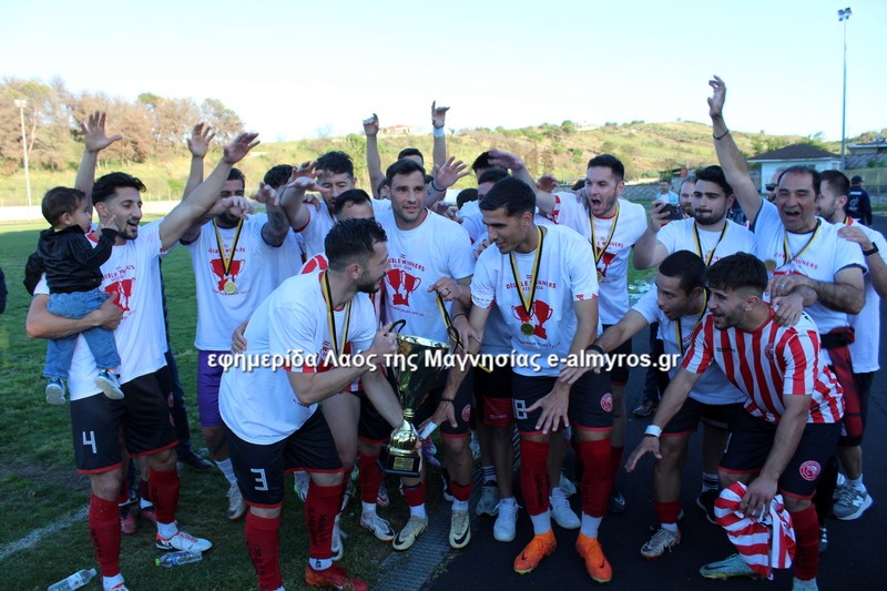 Ο πρόεδρος της ΕΠΣΘ Μίλτος Καλόγηρος μαζί με τον Δήμαρχο κο Νασίκα παρέδωσαν το τρόπαιο στον Κώστα Καμπέρη που το σήκωσε ψηλά και άρχισαν οι πανηγυρισμοί…