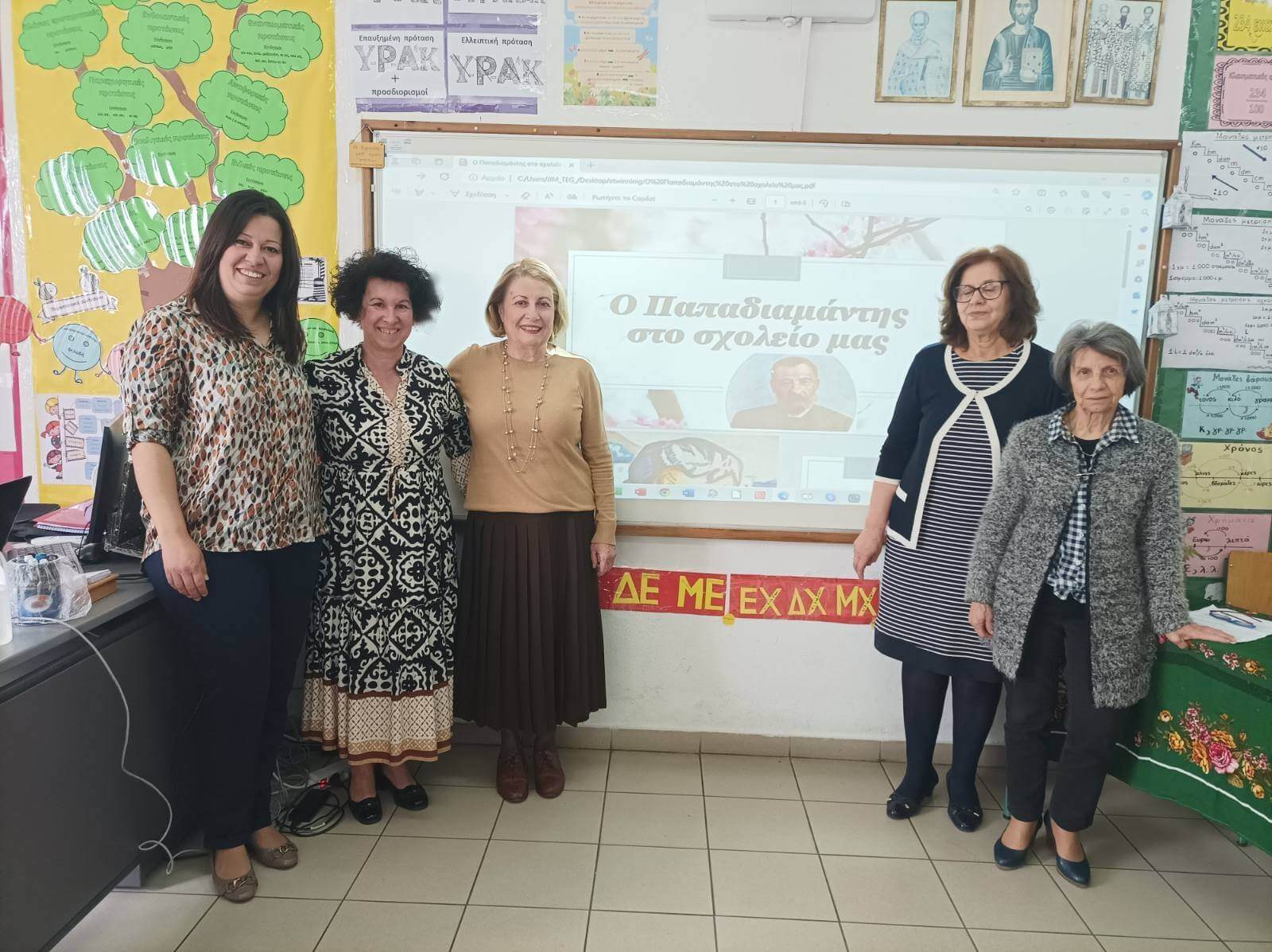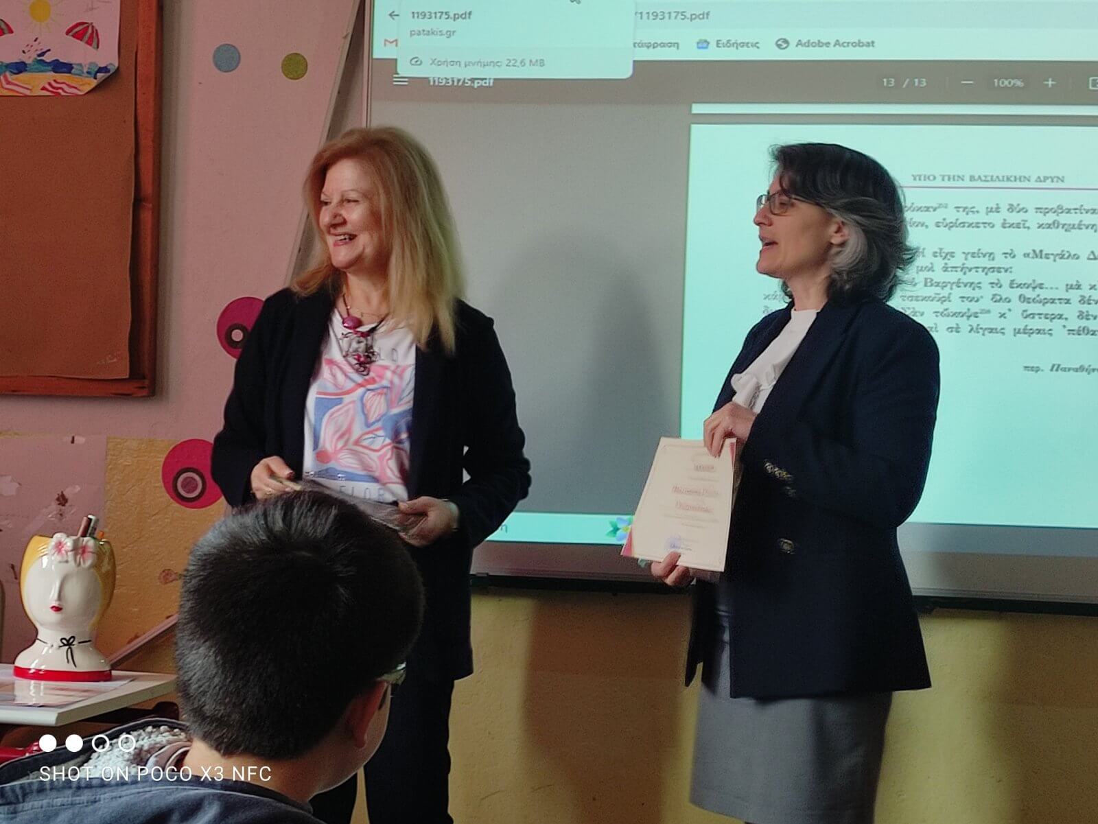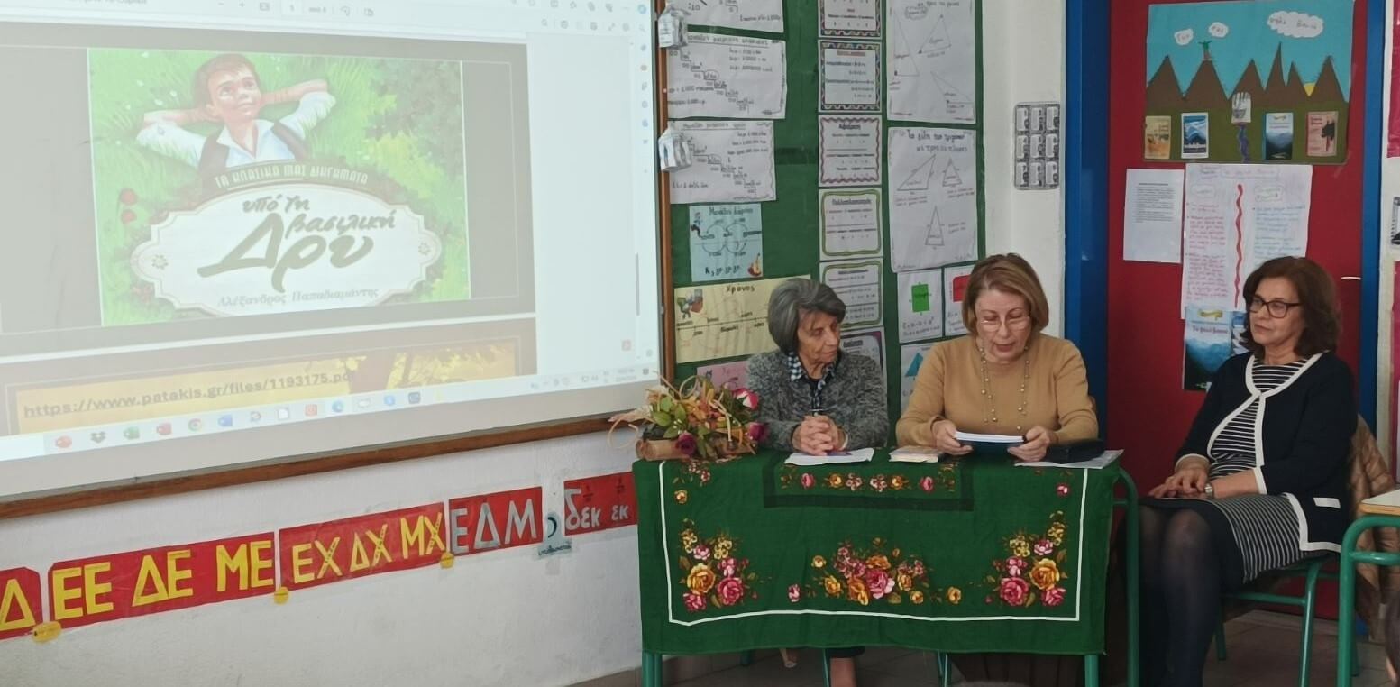Την Δευτέρα, 22/4/2024 στο 3ο Δημοτικό Σχολείο Αλμυρού, τα μέλη Ειρήνη Μπάιμπα, Βούλα Γιασλακιώτη – Φυτιλή και Ευγενία Παρίση, παρουσίασαν το διήγημα «Υπό την Βασιλικήν Δρυν» του Αλέξανδρου Παπαδιαμάντη, στις Ε2 & ΣΤ2 τάξεις.