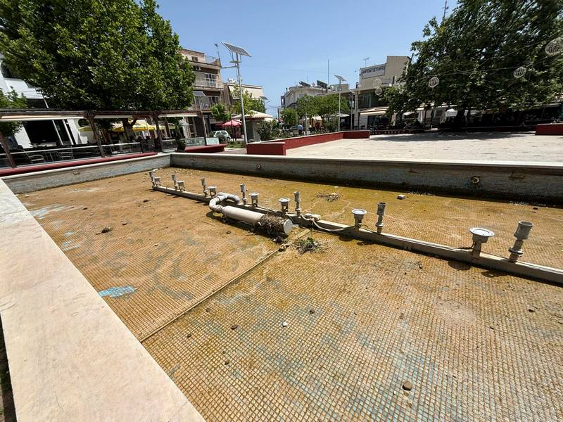 Αυτή είναι δυστυχώς η κατάσταση του συντριβανιού της Κεντρικής Πλατείας λίγες μόνο μέρες μετά την επαναλειτουργία του και την αισθητική του αναβάθμιση με το παρτέρι περιμετρικά. Τα λουλούδια ξεριζώθηκαν και πετάχτηκαν μέσα στο συντριβάνι μαζί με δεκάδες πέτρες και χώματα, με αποτέλεσμα να καεί η αντλία που απορρόφησε αυτά τα υλικά.