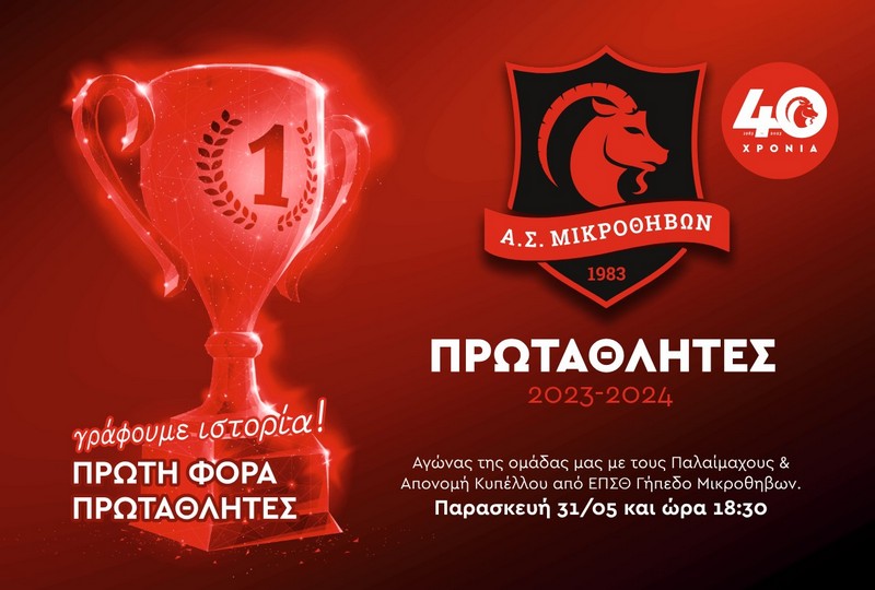 Η διαδρομή του Αθλητικού Συλλόγου Μικροθηβών στο τοπικό μας ποδόσφαιρο έχει συμπληρώσει σαράντα χρόνια αλλά ο σύλλογος δεν είχε κατακτήσει ποτέ κάποιον τίτλο. Αυτό μέχρι το Σάββατο 18 Μαΐου 2004 καθώς με τη νίκη 1-2 στην έδρα της Νίκης Β’, οι «τράγοι» πανηγύρισαν το πρωτάθλημα Γ’ Τοπικής 2023-24!