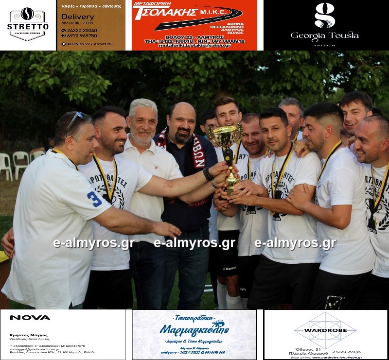 Ο Θεματικός Αντιπεριφερειάρχης Απόστολος Καναβός και η τέως Αντιπεριφερειάρχης Δωροθέα Κολυνδρίνη έβαλαν τα μετάλλια στον λαιμό των ποδοσφαιριστών, του προπονητή και του προέδρου, ενώ ο Υφυπουργός Χρήστος Τριαντόπουλος και ο πρόεδρος της ΕΠΣΘ Μίλτος Καλόγηρος παρέδωσαν το τρόπαιο στον αρχηγό Κώστα Νιφόρο. Μαζί με τον Αλμπέρτο Λανάι και Γιάννη Παπανίκο, το σήκωσαν ψηλά στον ουρανό των Μικροθηβών… ακολούθησαν οι αναμνηστικές ομαδικές φωτογραφίες και έπειτα άνοιξαν οι …επιβεβλημένες σαμπάνιες. Αυτά στο γήπεδο …γιατί οι πανηγυρισμοί είχαν και δεύτερο μέρος αργά το βράδυ στα μπουζούκια…